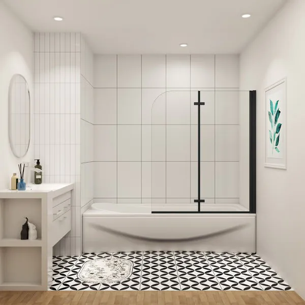 De Badwand Black Crocus 120x140 cm is een 2-delige badwand met 6 mm helder glas en een antikalk-coating. De matzwarte profielen geven een moderne uitstraling, terwijl het inklapbare ontwerp zorgt voor extra gebruiksgemak en spatbescherming.