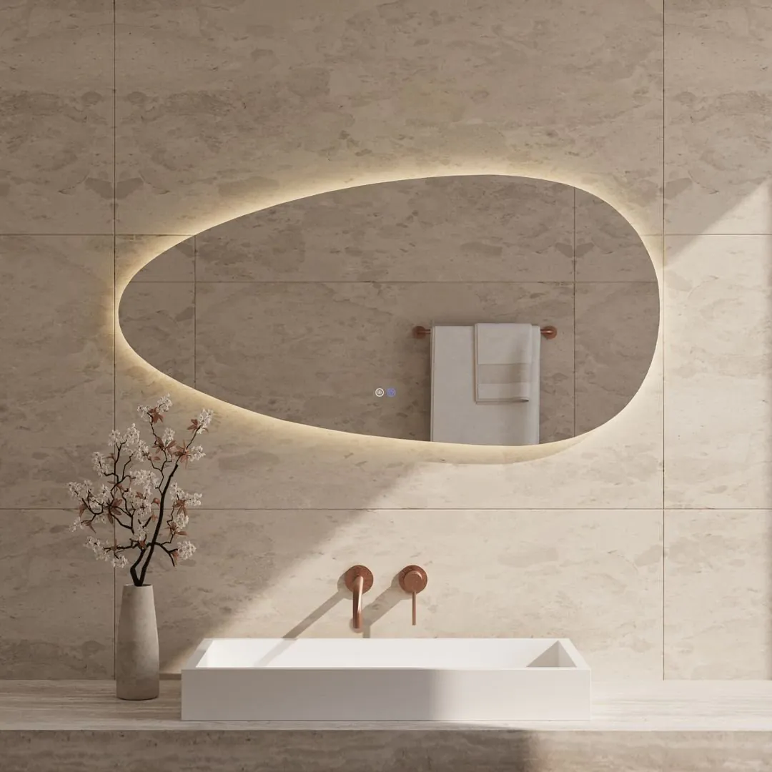 De grootste variant uit de Boloo-serie brengt luxe en rust samen. Met zijn royale afmeting van 140 bij 70 centimeter is deze spiegel perfect voor ruime badkamers. De anti-condens verwarming zorgt altijd voor helder zicht en het licht is instelbaar in drie tinten en verschillende sterktes. Het brede ontwerp geeft de ruimte een stijlvolle balans en maakt de badkamer lichter en overzichtelijker.