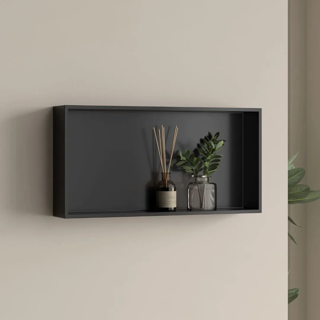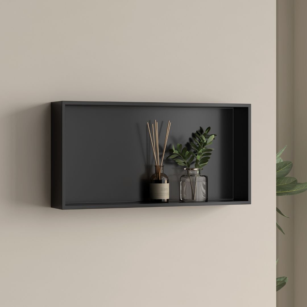 De "Bandy" opbouwnis in mat-zwart is een stijlvol en functioneel accessoire voor je badkamer of toilet. Met zijn strakke lijnen en moderne, matte afwerking voegt deze nis een elegante en eigentijdse uitstraling toe aan je interieur. Dankzij de royale afmeting van 60 x 30 cm biedt de nis volop ruimte voor het opbergen van verzorgingsproducten, douchebenodigdheden of decoratieve items. De opbouwnis wordt direct tegen de muur gemonteerd, wat zorgt voor een snelle en eenvoudige installatie zonder hak- of breekwerk. Het ingetogen ontwerp in mat zwart past naadloos in moderne, industriële en minimalistische badkamers.