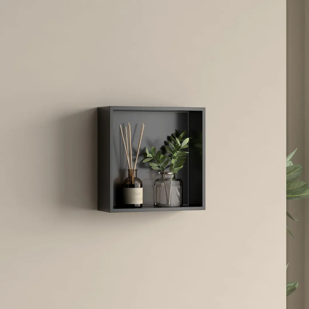 De "Logy" opbouwnis in mat-zwart is een stijlvol en functioneel accessoire voor je badkamer of toilet. Met zijn minimalistische vormgeving en matte afwerking voegt deze nis een moderne, elegante touch toe aan elke ruimte. De nis meet 30 x 30 cm, waardoor er voldoende ruimte is voor het opbergen van verzorgingsproducten, douchebenodigdheden of decoratieve items. De opbouwnis wordt eenvoudig direct tegen de muur gemonteerd, zonder dat inbouw of breekwerk nodig is. Dankzij het strakke ontwerp past de "Logy" opbouwnis moeiteloos in uiteenlopende interieurstijlen. Kleuren zijn ter indicatie en kunnen afwijken van de foto. Hieraan kunnen geen rechten worden ontleend.