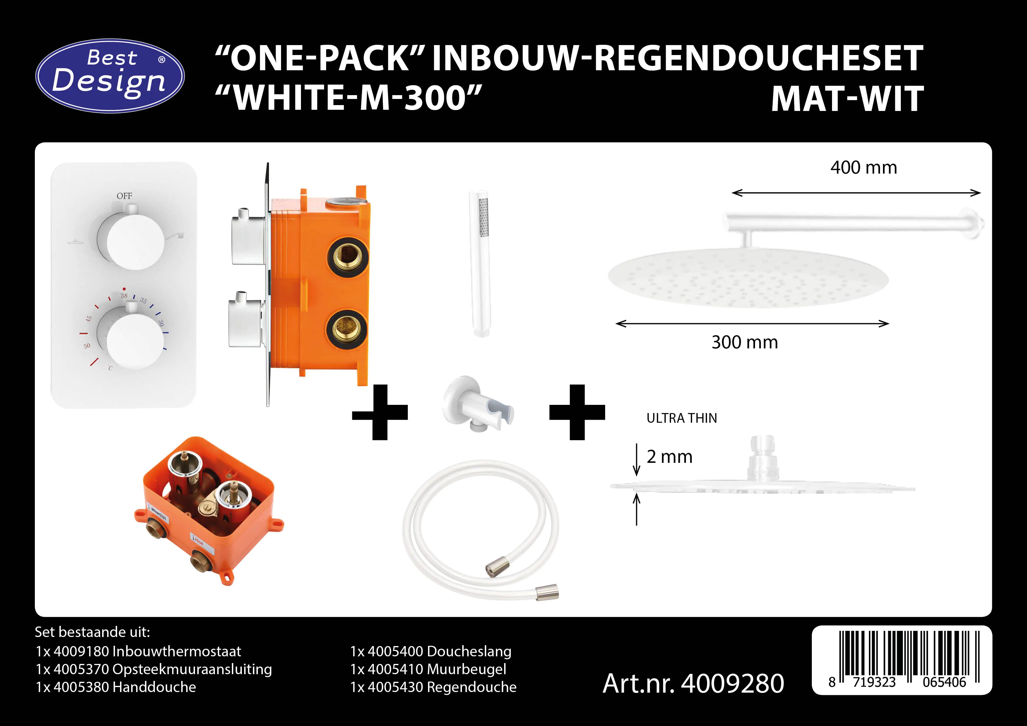 Best-Design One-Pack inbouw-regendoucheset White-M-300
