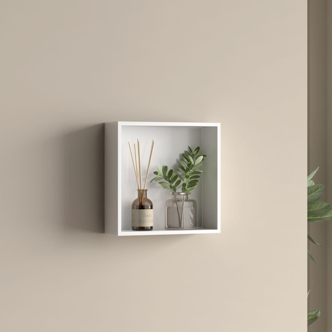De "Logy" opbouwnis in mat-wit is een stijlvol en functioneel accessoire voor je badkamer of toilet. Met zijn minimalistische vormgeving en frisse, matte afwerking voegt deze nis een moderne en rustige uitstraling toe aan elke ruimte. De nis meet 30 x 30 cm, waardoor er voldoende ruimte is voor het opbergen van verzorgingsproducten, douchebenodigdheden of decoratieve items. De opbouwnis wordt eenvoudig direct tegen de muur gemonteerd, zonder dat inbouw of breekwerk nodig is. Dankzij het strakke ontwerp past de "Logy" opbouwnis moeiteloos in uiteenlopende interieurstijlen. Kleuren zijn ter indicatie en kunnen afwijken van de foto. Hieraan kunnen geen rechten worden ontleend.