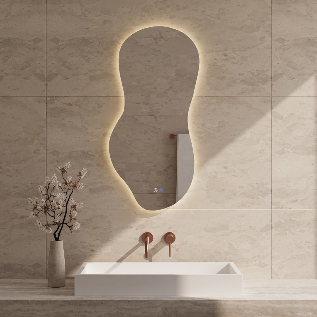 De Ziza spiegel heeft een langwerpige organische vorm die gelijk de aandacht trekt. Het verwarmde oppervlak blijft helder en de verlichting kan worden ingesteld in drie kleuren en verschillende intensiteiten. Met zijn formaat van 100 bij 50 centimeter past deze spiegel goed boven wastafels en voegt hij een stijlvolle, moderne uitstraling toe aan de badkamer.