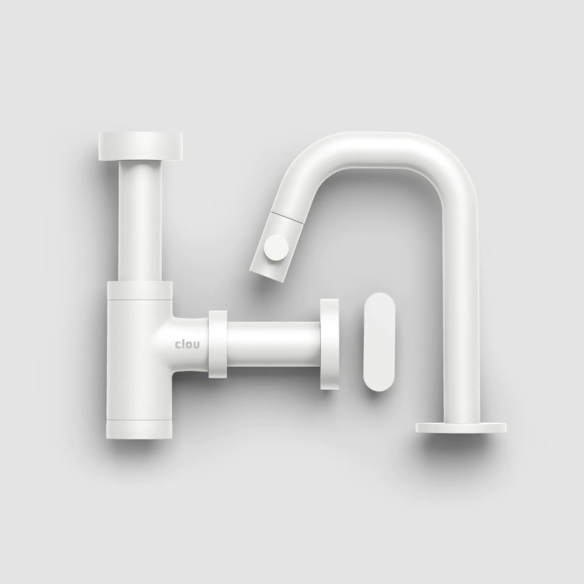 De Kaldur set, geschikt voor (New) Flush / First fonteinen, bestaat uit een koudwaterkraan, sifon en afvoerplug in mat wit gelakt. Deze set is een complete oplossing voor jouw wastafel en biedt zowel functionaliteit als een strak design. De kraan heeft een 3/8” aansluiting, geschikt voor zowel flexibele als vaste aansluitingen, waardoor de installatie eenvoudig en flexibel is.