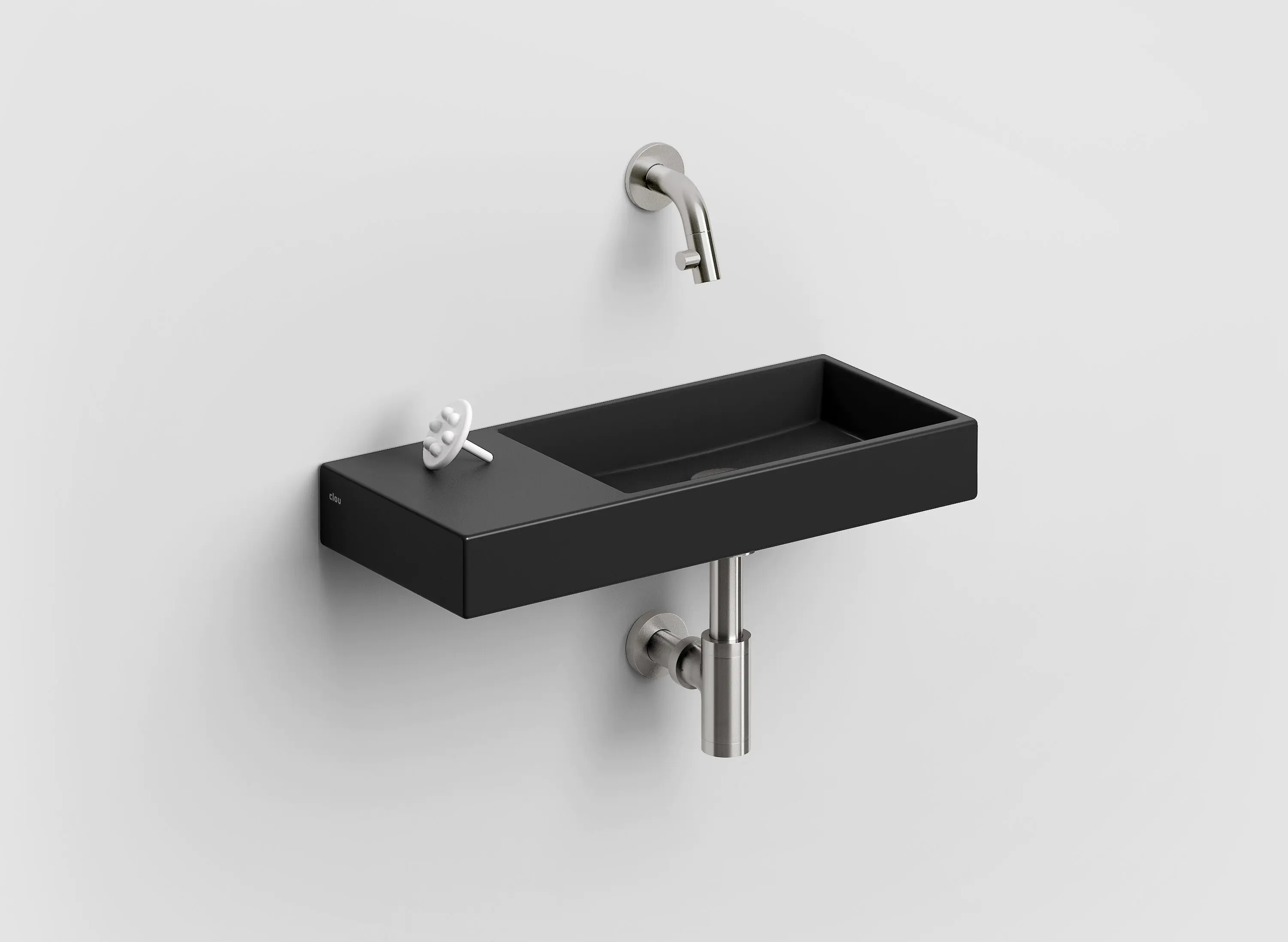 Clou Mini Wash Me fontein 45x19cm zonder kraangat en plug kranenbank links Keramiek Zwart mat