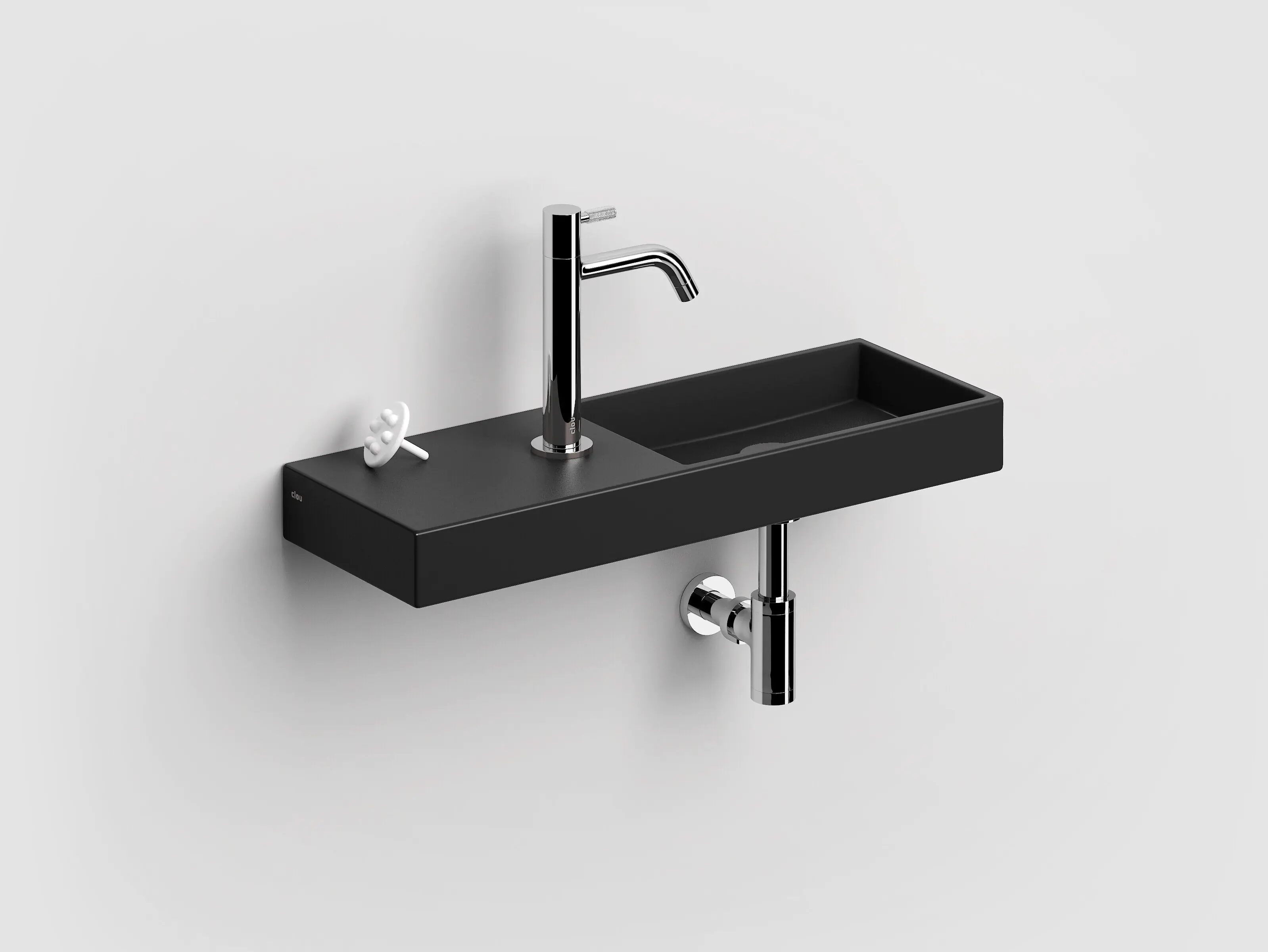 Clou Mini Wash Me fontein 56x19cm kraangat links Keramiek Zwart mat