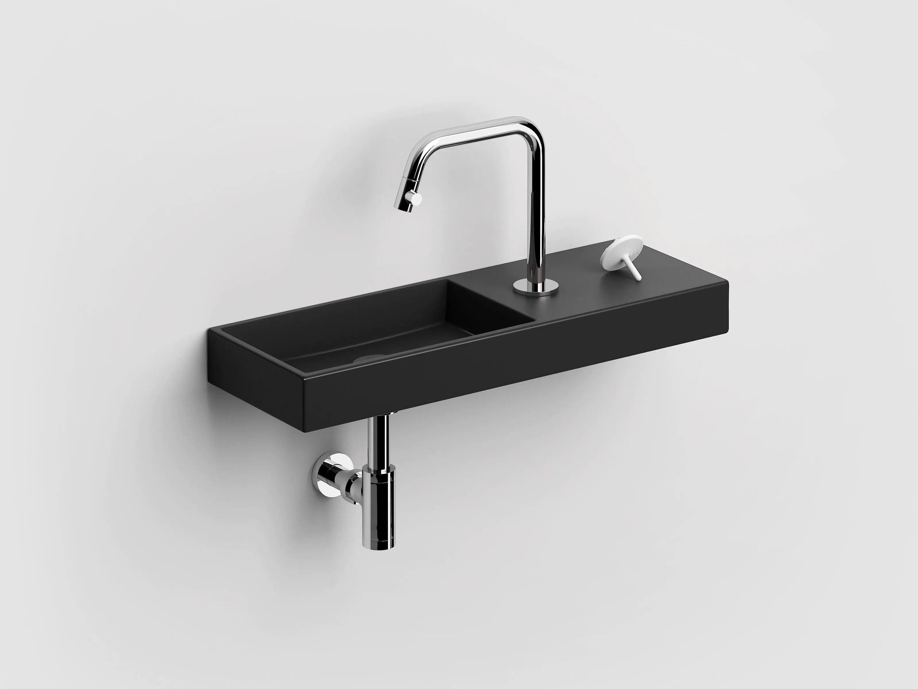Clou Mini Wash Me fontein 56x19cm kraangat rechts Keramiek Zwart mat