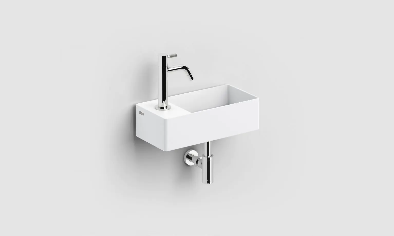 Clou New Flush 3 fontein 35x18cm inclusief afvoerplug voorbewerking voor kraangat links Wit mat
