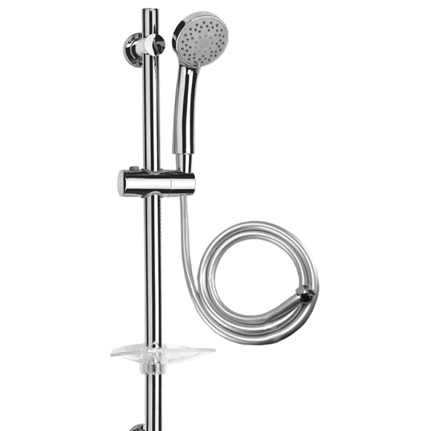 Deze complete glijstangset van het merk Riko heeft een handdouche met 5-standen. De complete set is niet alleen stijlvol maar ook praktisch. Het zeepschaaltje is handig voor uw zeep tijdens het douchen en de optionele waterbesparende doorstroombegrenzer bespaart tot 50% waterverbruik. Kleur: chroom