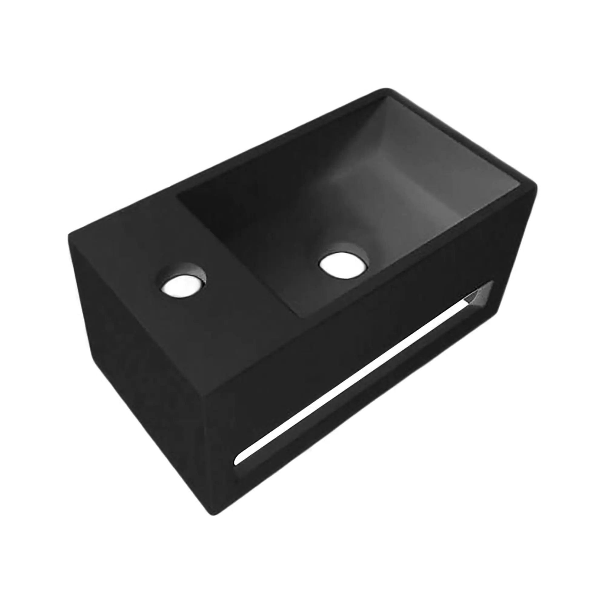 Bent u op zoek naar een modern uitziend en praktisch toiletfontein met handdoekhouder? Deze toiletfontein van het materiaal Solid Surface heeft een strak en modern design en past in alle moderne badkamers en toiletten. Voor veel mensen is dit materiaal nog onvoldoende bekend, maar Solid Surface is een materiaal dat zeer geschikt is voor sanitaire ruimtes. Het is een composiet van acryl en natuurlijke mineralen. Het is een materiaal dat zeer duurzaam is gemaakt. Bovendien is Solid Surface naadloos en poriënvrij, zodat vuil en bacteriën zich niet aan het oppervlak kunnen hechten. Dit maakt het schoonmaken van deze toiletfontein Solid Surface met Handdoekhouder een koud kunstje. Dit model heeft het kraangat rechts. De afmetingen ervan zijn 35,8x20,5x15,7 cm.