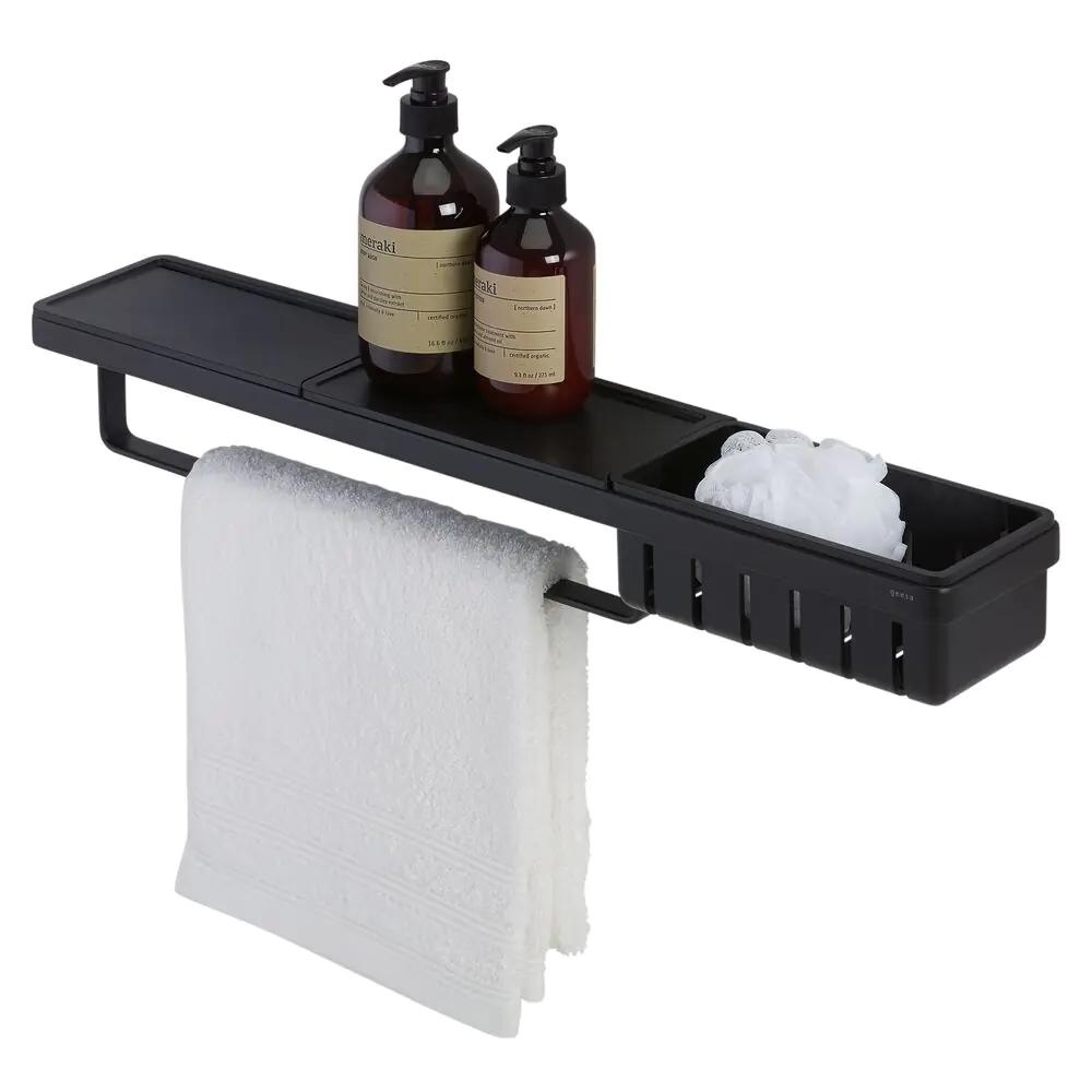 Geesa Frame Planchet met handdoekrek en douchemand 63 cm Zwart