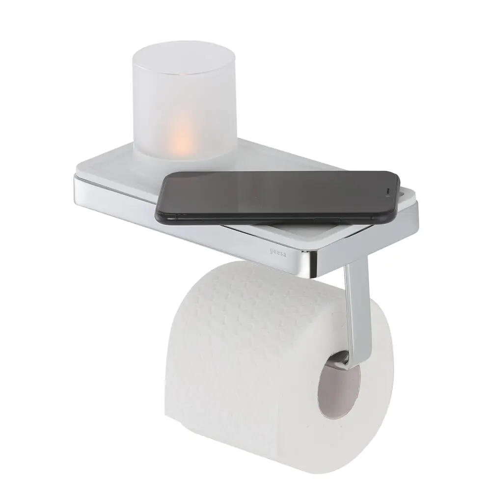 Geesa Frame Toiletrolhouder met planchet en (LED licht)houder Wit / Chroom