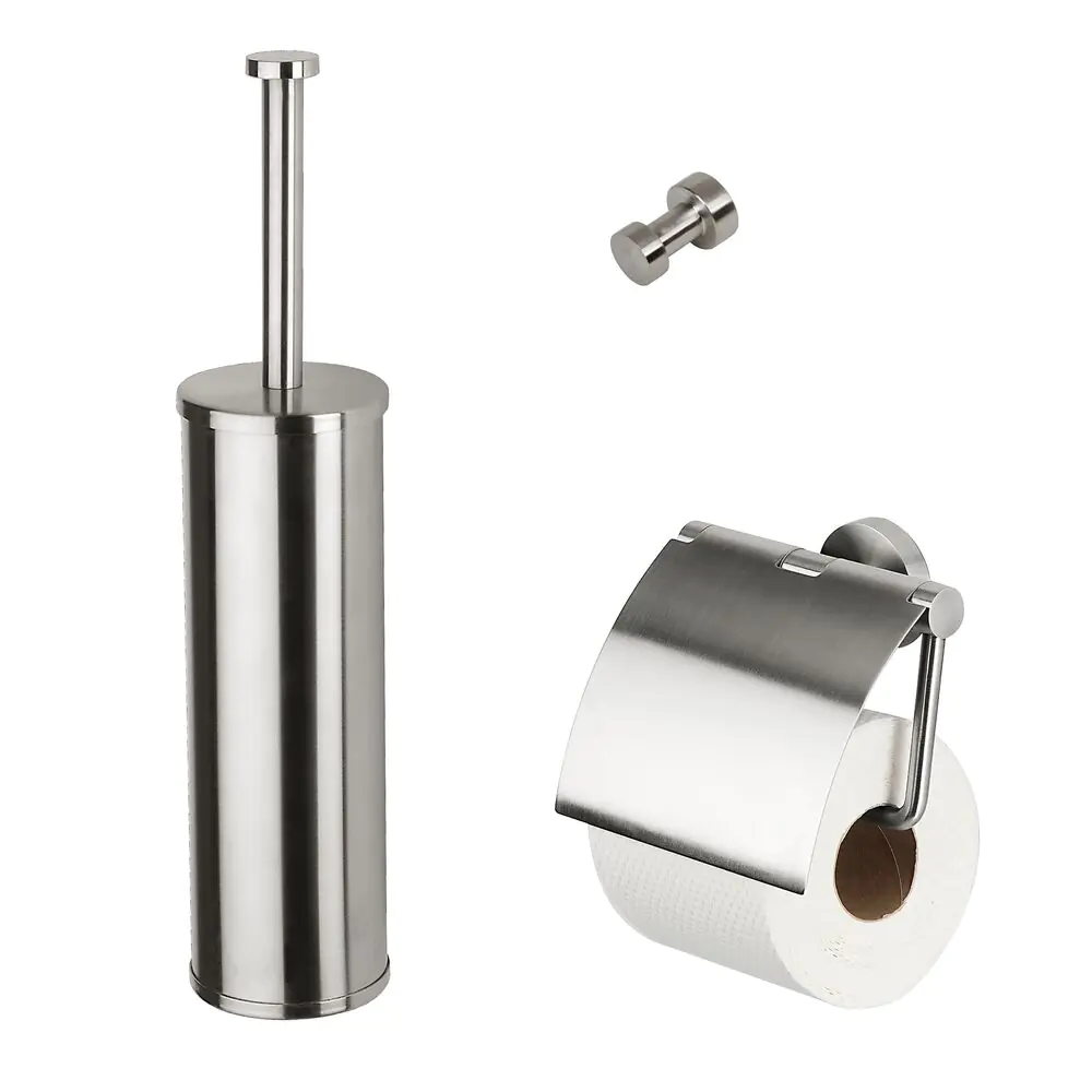 Geesa Nemox Toiletaccessoireset - Toiletborstel met houder - Toiletrolhouder met klep - Handdoekhaak - RVS geborsteld