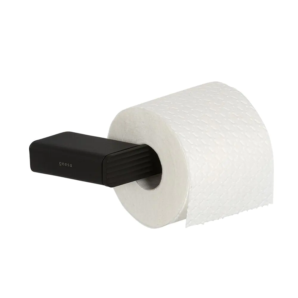 Geesa Shift Toiletrolhouder zonder klep met horizontaal strepenpatroon Zwart (rechts)