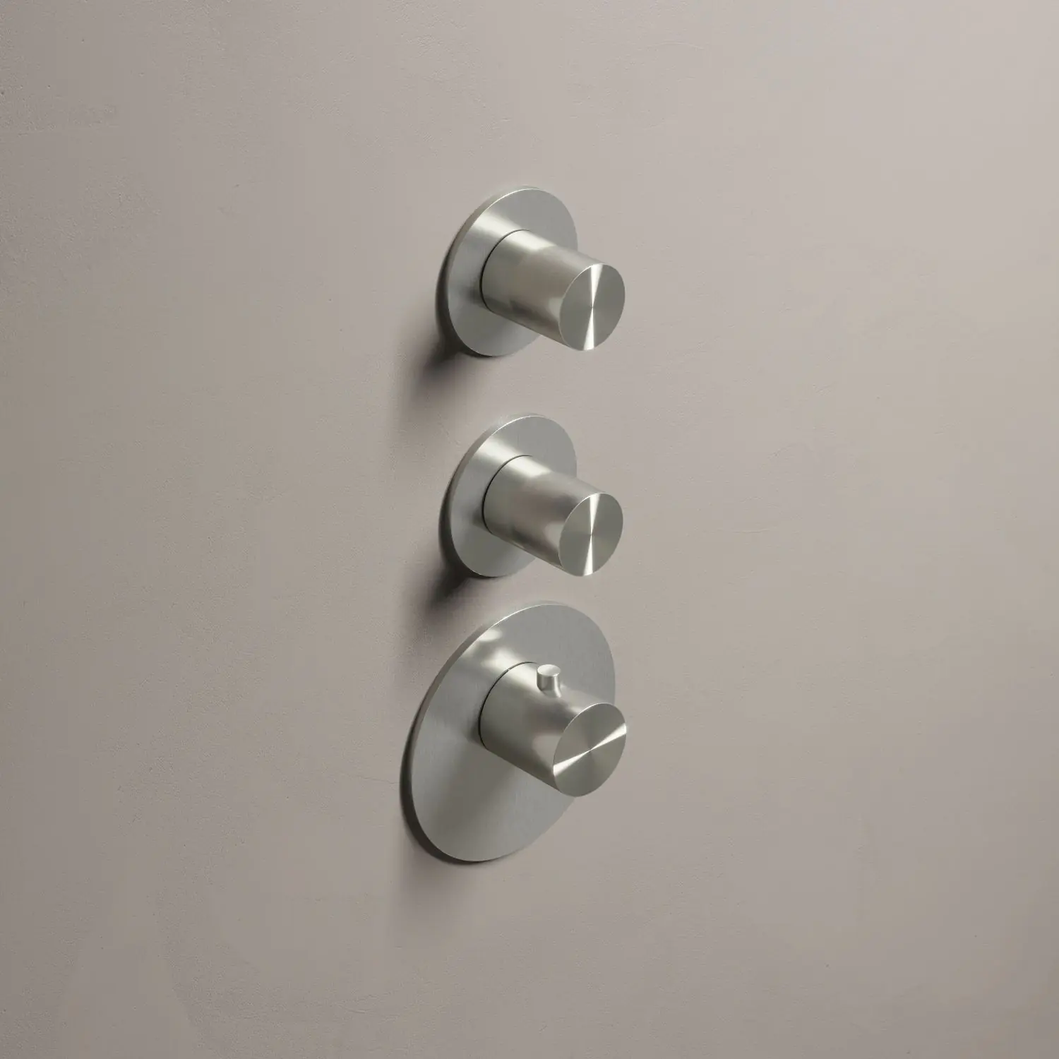 De Archie serie van Hotbath kan worden omschreven als; ijzersterk, stijlvol en helemaal van deze tijd. De kranen zijn gemaakt van hoogwaardig RVS 316 materiaal waardoor u zo lang mogelijk kunt genieten van uw sanitair. Kenmerkend aan de Archie kranen serie is de Vinyl Touch op bovenkant van de kraan wat u doet denken aan het strakke uiterlijk van een grammofoonplaat. De man van staal, zoals de kranen ook wel worden genoemd, gaan door middel van het Flower Power systeem zuinig om met warm water. De High Flow inbouw thermostaat met 2 stopkranen is volledig afgewerkt in de bekende RVS look van Hotbath. Met de thermostaat en stopkraan kunt u eenvoudig uw regendouche en handdouche tegelijk bedienen en de temperatuur bepalen. De inbouw thermostaat wordt geleverd exclusief het inbouwdeel. Deze kunt u bijbestellen in onze webshop. Doordat de thermostaat en de stopkranen zijn ingebouwd creëert u een ruimtelijk gevoel. De inbouw thermostaat is ook beschikbaar met meer of minder stopkranen.