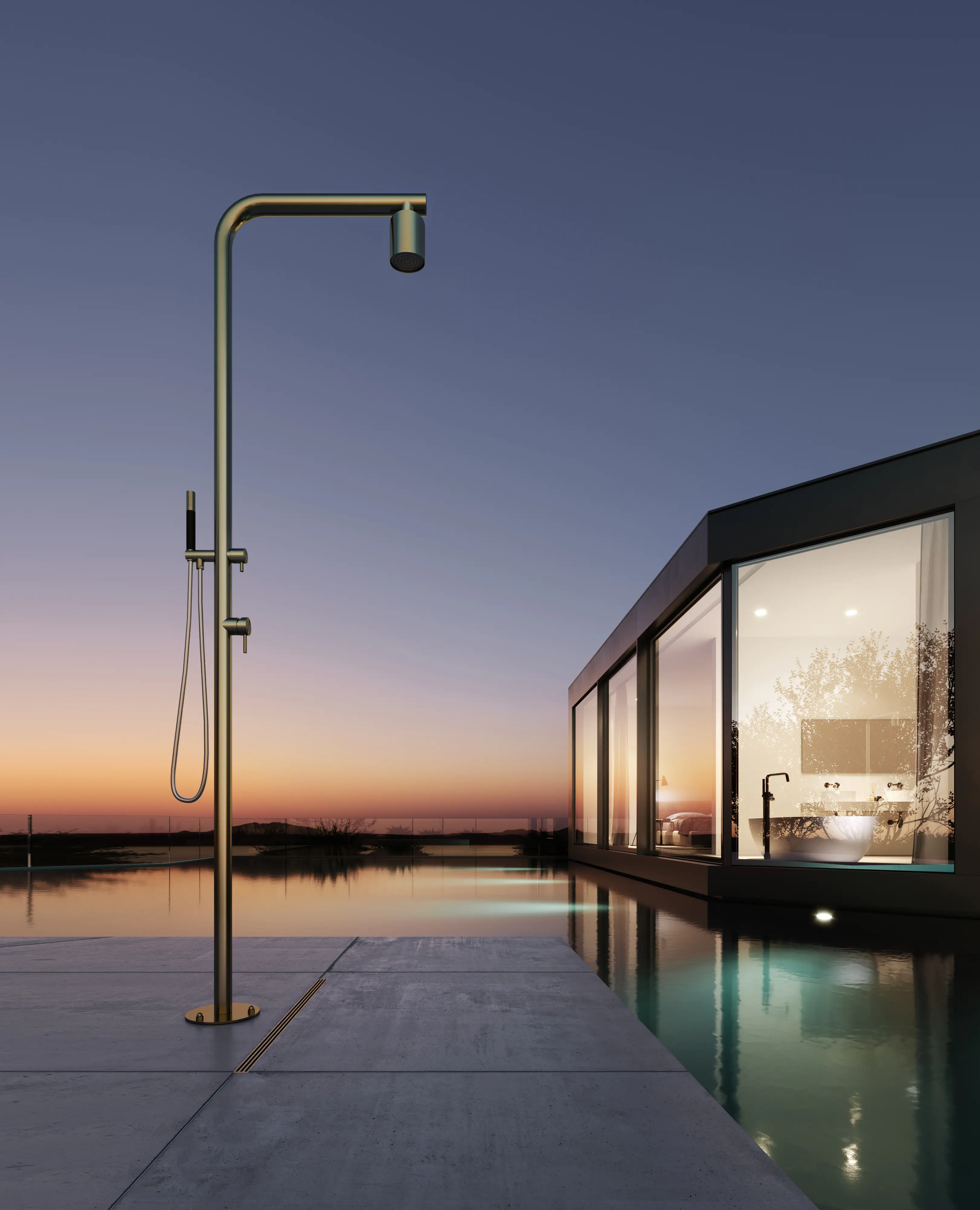 Deze mooie buitendouche hoort bij de Archie serie van Hotbath. Het heeft dan ook een stijlvolle en minimalistische uitstraling. Wat de Archie serie uniek maakt is dat alles gemaakt is van RVS316 in plaats van messing. RVS316 is bestemd is tegen vocht, hoge temperaturen en vuil. Het is een van de meest hygiënische materialen en is makkelijk schoon te maken. Hierdoor gaat het lang mee en heeft u dus lang plezier van deze douche. Dankzij de PVD afwerking is het extra stoot- en krasbestendig en blijft het dus langer mooi. De douche is 233 cm hoog en 52.5 cm diep en de afstand van de grond tot aan de hoofddouche is 210 cm. Met de stoere stijlvolle beam als hoofddouche en een staafhanddouche is het een mooie en complete douche. Om de douche aan te kunnen sluiten, is er een draadaansluiting van 3/8". De ronde vloerplaat heeft een diameter van 10 cm en is te installeren met tweecomponentenhars.