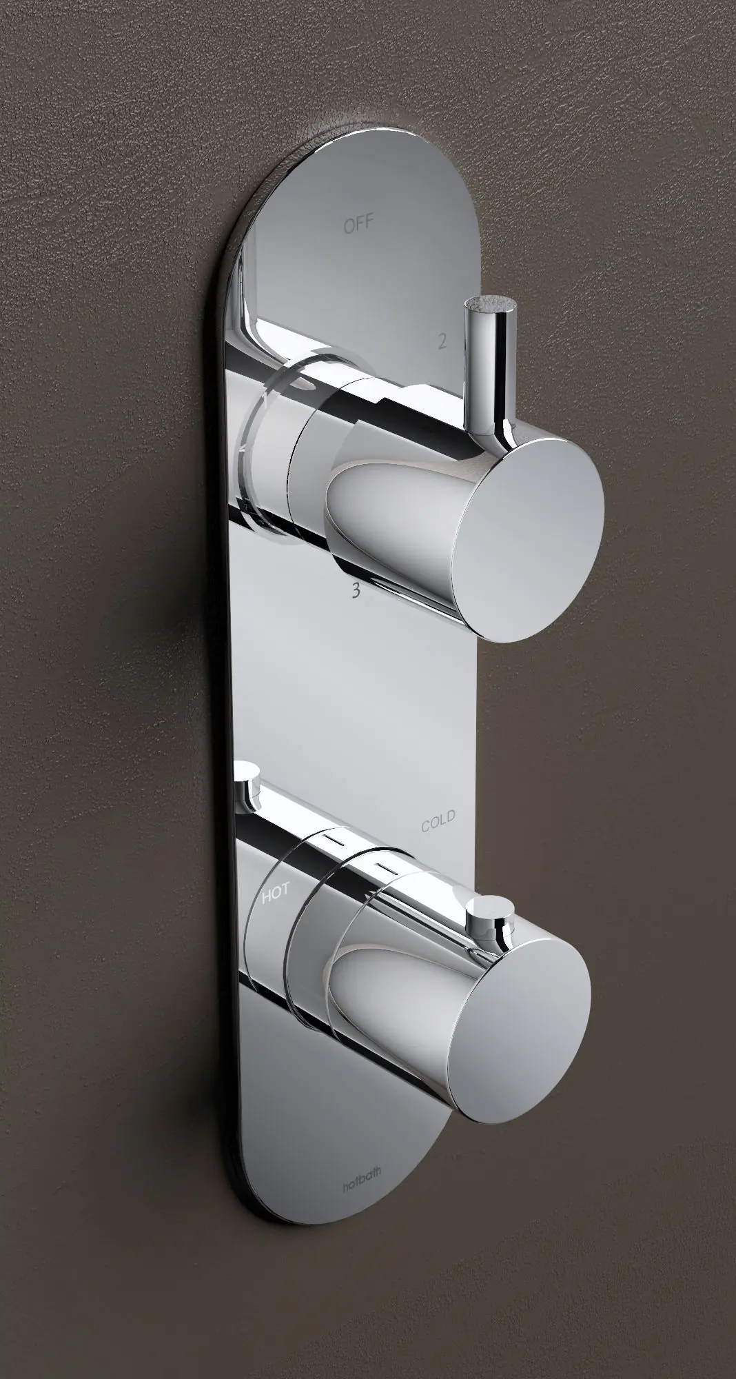 Op zoek naar een design inbouw douchekraan? Kies dan voor deze beauty! De thermostaat bestaat uit 2 bedieningen. Een bediening is voor de thermostaat en de andere gebruikt u om de kraan mee aan of uit te zetten. Omdat de kraan thermostatisch is heeft de kraan een temperatuurbegrenzer. U voorkomt daardoor kans op verbranding bij bijvoorbeeld kleine kinderen. Daarnaast heeft de temperatuurregelaar een praktische eigenschap. U zet namelijk de kraan aan en het water krijgt de temperatuur zoals u die heeft ingesteld. De temperatuur blijft exact gelijk. Via thermostatische kleppen wordt het koude en hete water zo gemengd, dat het water een constante temperatuur heeft. Door het keramische binnenwerk behoud deze kraan jarenlang zijn kwaliteit.