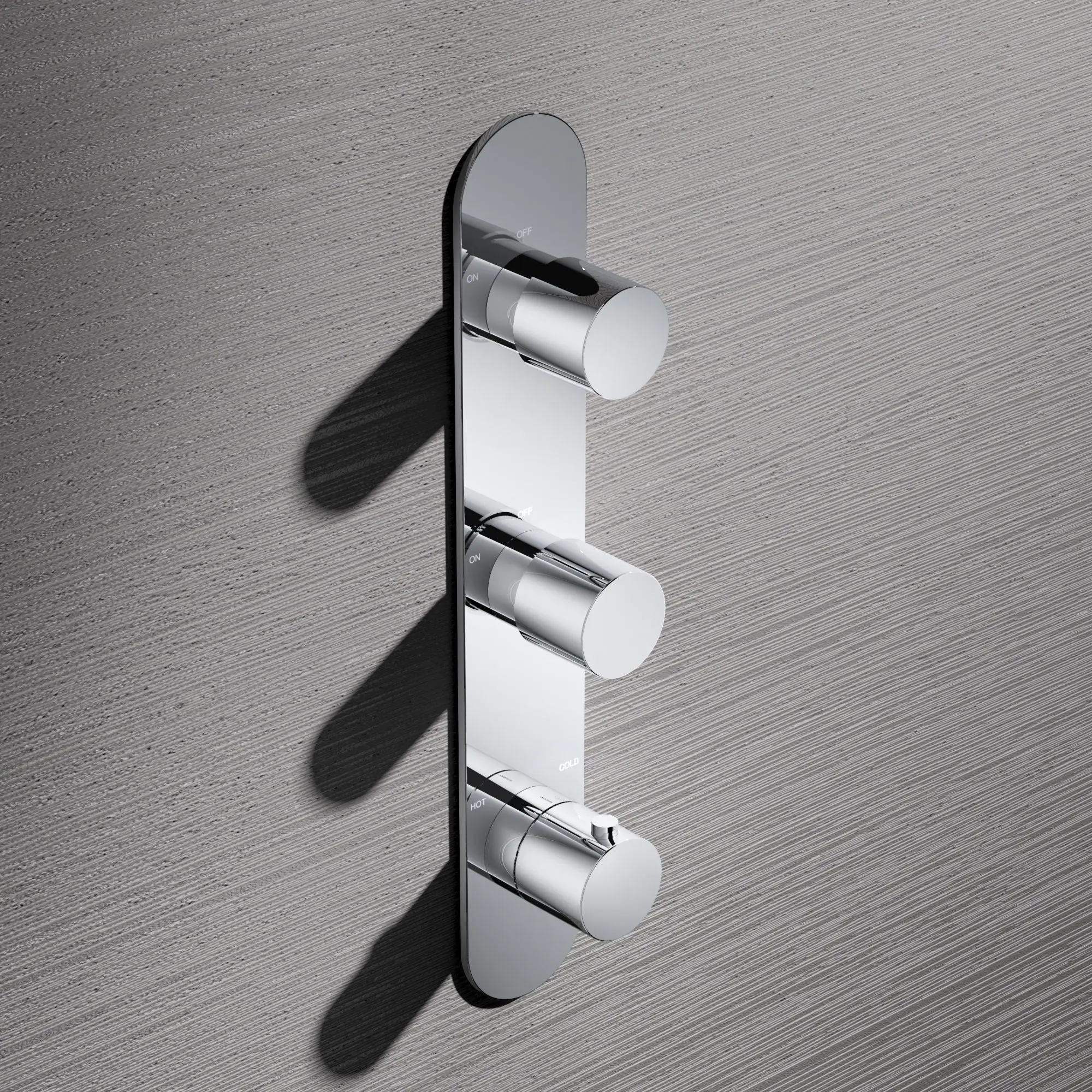 Door het gebruik van hoogwaardige materialen heeft de Buddy serie een mooie robuuste uitstraling. Deze inbouw douchetermostaat heeft 3 gelijke ronde knoppen met ieder een andere bediening. Omdat de thermostaat een 2-weg omstel bevat kunt u hier zowel een douche als een handdouche op aansluiten. De douchethermostaat van het merk Hotbath is veilig omdat het een ingestelde temperatuurregelaar bevat waardoor het water een constante temperatuur heeft. Ideaal voor een gezin met kleine kinderen. Hiermee voorkom je de kans op verbranding. De thermostaatkraan is ook nog eens water en energie besparend.