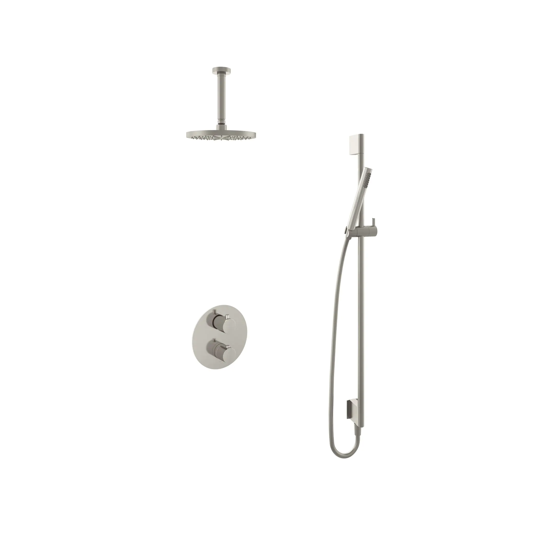 Deze complete regendoucheset van Hotbath Buddy kunt u precies samenstellen zoals u dat wenst. Het afbouwdeel is voorzien van 2 draaiknoppen: één voor de watertemperatuur en één om te bepalen of het water uit de hoofddouche of uit de staafhanddouche moet stromen. Iedere set wordt geleverd met de gehele inbouwbox en externe schakelaars. De set is verkrijgbaar in verschillende kleuren. Deze set is voorzien van een plafondbuis 15 cm, hoofddouche 20 cm en een glijstang met staafhanddouche. Let op: De hoofddouches met een diameter 20 cm hebben minimaal een CW3 ketel nodig om dit systeem zo goed mogelijk te laten werken. Voor hoofddouches met een diameter van 25 cm of groter, geldt een CW4 systeem of hoger.