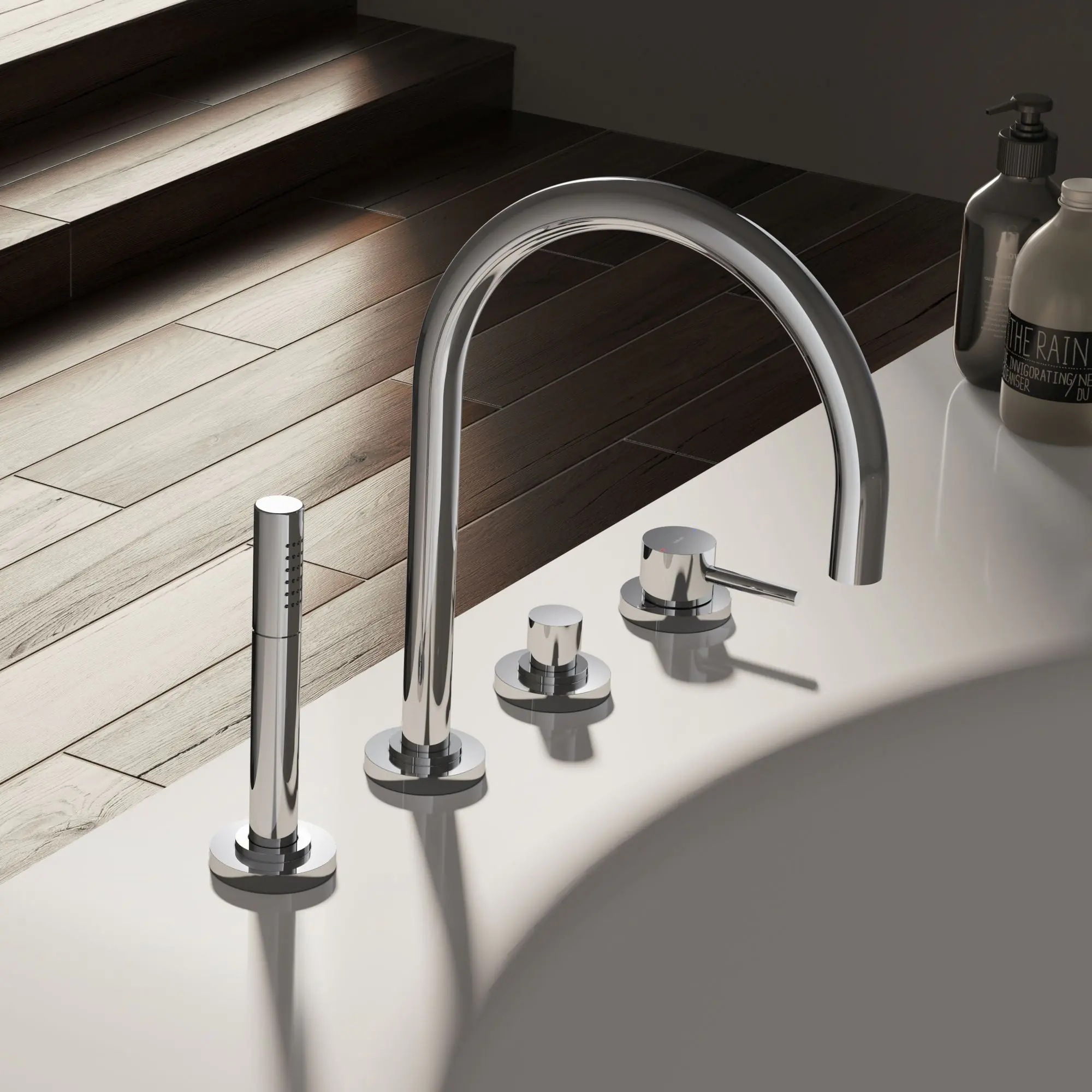 Door de grote opvallende zwanehals kraan en de handdouche waarbij de sproeier gelijk loopt aan het handvat maakt dit de stijlvolle uitstraling helemaal af aan uw badkamer. Met een badrandkraan is de volledige kraan netjes weg gewerkt in de rand van het bad! Het enige wat u ziet zijn de knoppen, de kraan en handdouche. De doucheslang zal dus nooit in de weg kunnen zitten terwijl u lekker aan het genieten bent van uw bad moment. De badkraan is een mengkraan voorzien van 4 elementen, ook wel 4-gats genoemd. U ziet de kraan, de handdouche en 2 knoppen. Met de 2 knoppen bedient uw het warm en koud water en ook gelijk de stroming snelheid van het water. Door het keramische binnenwerk behoud deze kraan jarenlang zijn kwaliteit. Het afvoerkoppelstuk past alleen op de Hotbath afvoersystemen. De badmengkraan wordt geleverd inclusief het P060 follow-me doucheslang doorvoersysteem. Inclusief inbouw gedeelte.