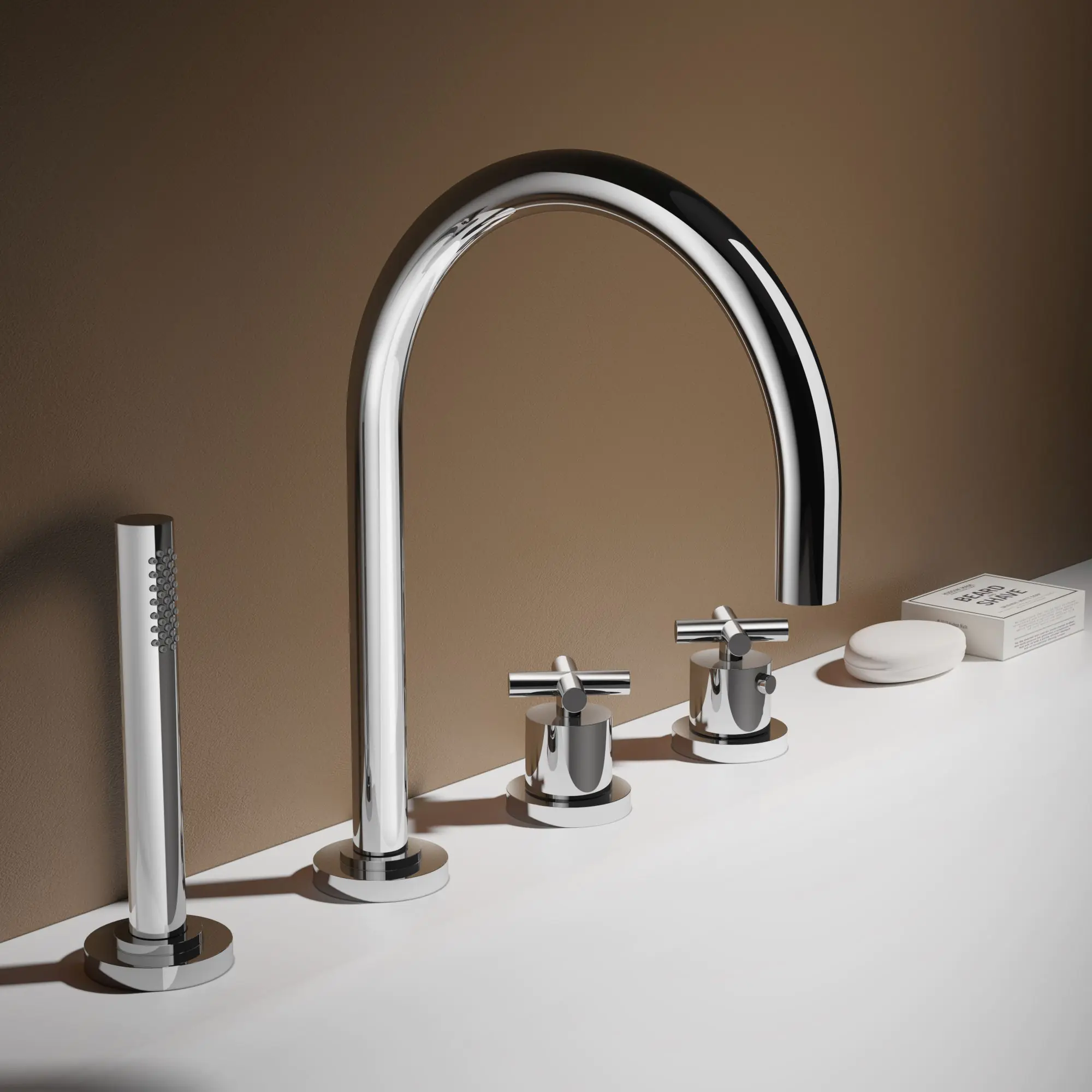 De Chap thermostaat badrandkraan van het merk Hotbath is een kraan met een geweldig design, die nagenoeg in iedere badkamer past. Doordat de kraan is voorzien van een unieke kruisgreep, kunt u de badkraan comfortabel en nauwkeurig bedienen. Het fijne van een thermostaatkraan, is dat het door u ingestelde temperatuur van het water exact gelijk blijft. Via thermostatische kleppen wordt het koude en hete water zo gemengd, dat het water een constante temperatuur heeft. Wanneer de watertoevoer wijzigt, reageert de thermostaat direct, waardoor de temperatuur van het water gelijk blijft. Door deze techniek zal u heerlijk genieten van een welverdiend bad! Wordt geleverd inclusief inbouw gedeelte.