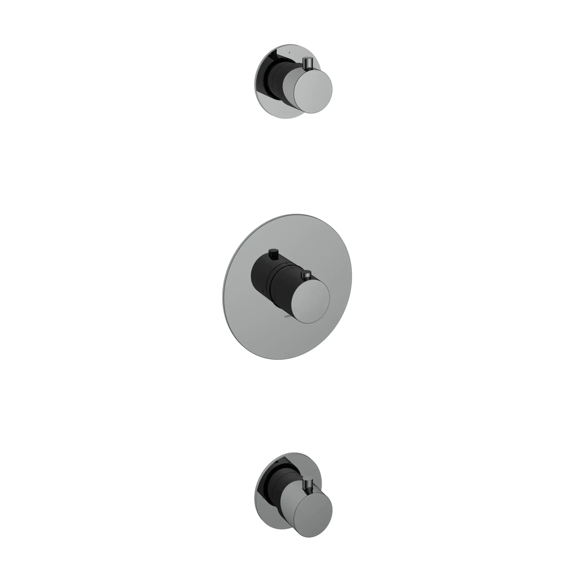 Hotbath Cobber Afbouwdeel - Inbouw Thermostaatkraan Rond Met 2 Stopkranen Zwart Chroom