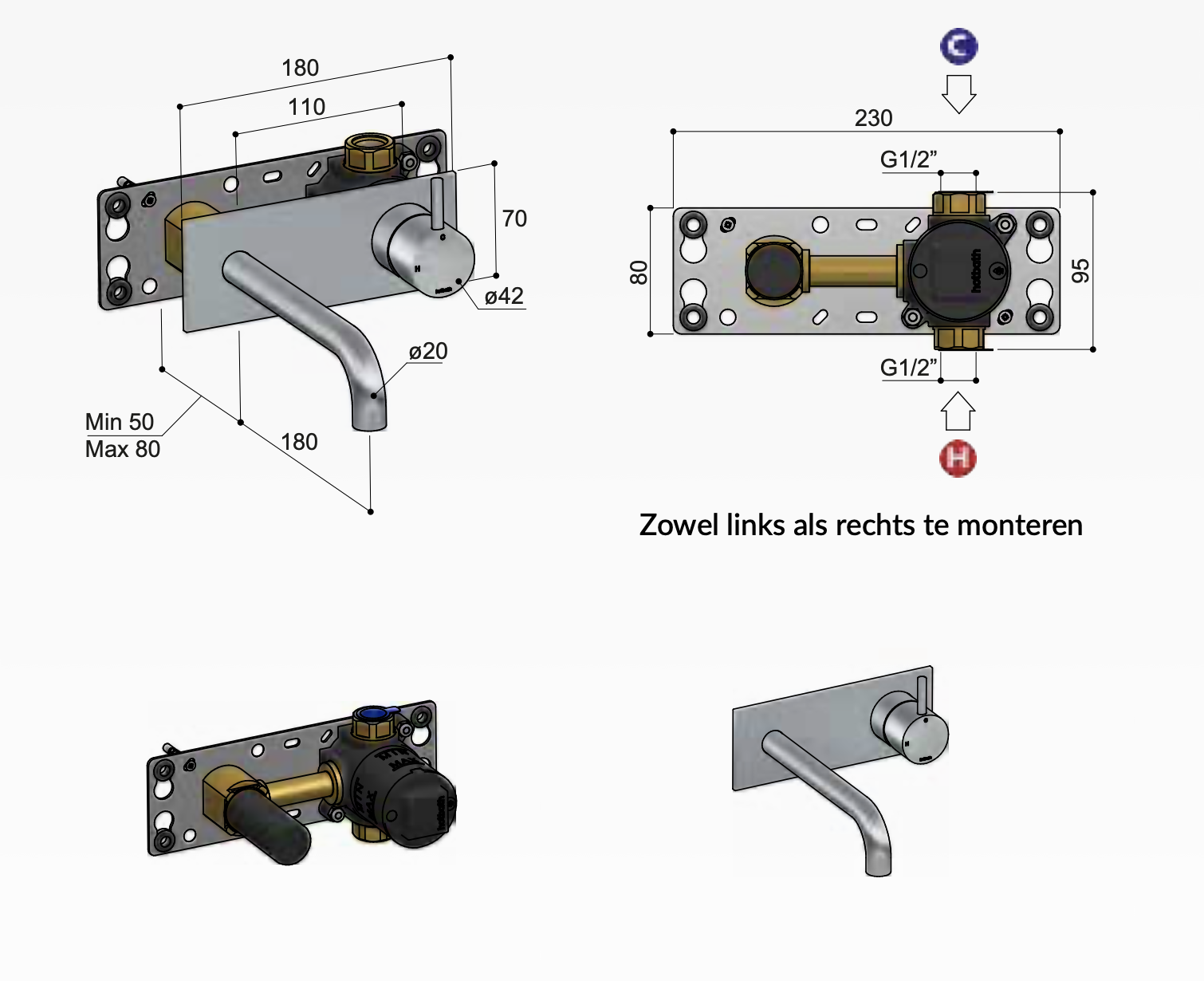 Deze inbouw wastafelkraan is van het merk Hotbath en behoort tot de serie Cobber. De kraan kunt u dankzij zijn moderne vormgeving uitstekend te plaatsen in vrijwel iedere badkamer of toiletruimte. Bij deze wastafelkraan bedien je de hendel om zo het warme en koude leidingwater te mengen. Het mengen doe je dus handmatig waardoor je zelf de temperatuur van het water kan aanpassen. Deze 1 greeps mengkraan is gemakkelijk te bedienen met 1 hendel. Dit houdt in dat je de hendel op 2 manieren kan draaien. Naar links of rechts draaien geeft dan warmer of kouder water, en door de hendel de andere kant op te bedienen om de kraan harder en zachter zetten De uitloop van de kraan heeft een lengte van 18 cm. De wastafelkraan dient aan de wand bevestigd te worden en wordt exclusief waste geleverd. De kraan heeft een keramisch binnenwerk, dit houden de hendel jarenlang soepel in zijn beweging om water door te laten en de kraan goed te sluiten. Deze inbouwkraan is ook voorzien van een 3+3 inbouwsysteem! 3+3 Inbouwsysteem Dankzij het 3+3 Inbouwsysteem is de inbouwkraan op 3 manieren te monteren en op 3 manieren eenvoudig te plaatsen. Er kan gekozen worden voor montage van de bediening rechts, boven of links. Let op! De kraan wordt geleverd exclusief inbouwdeel, deze kunt u bij verwante producten erbij selecteren.