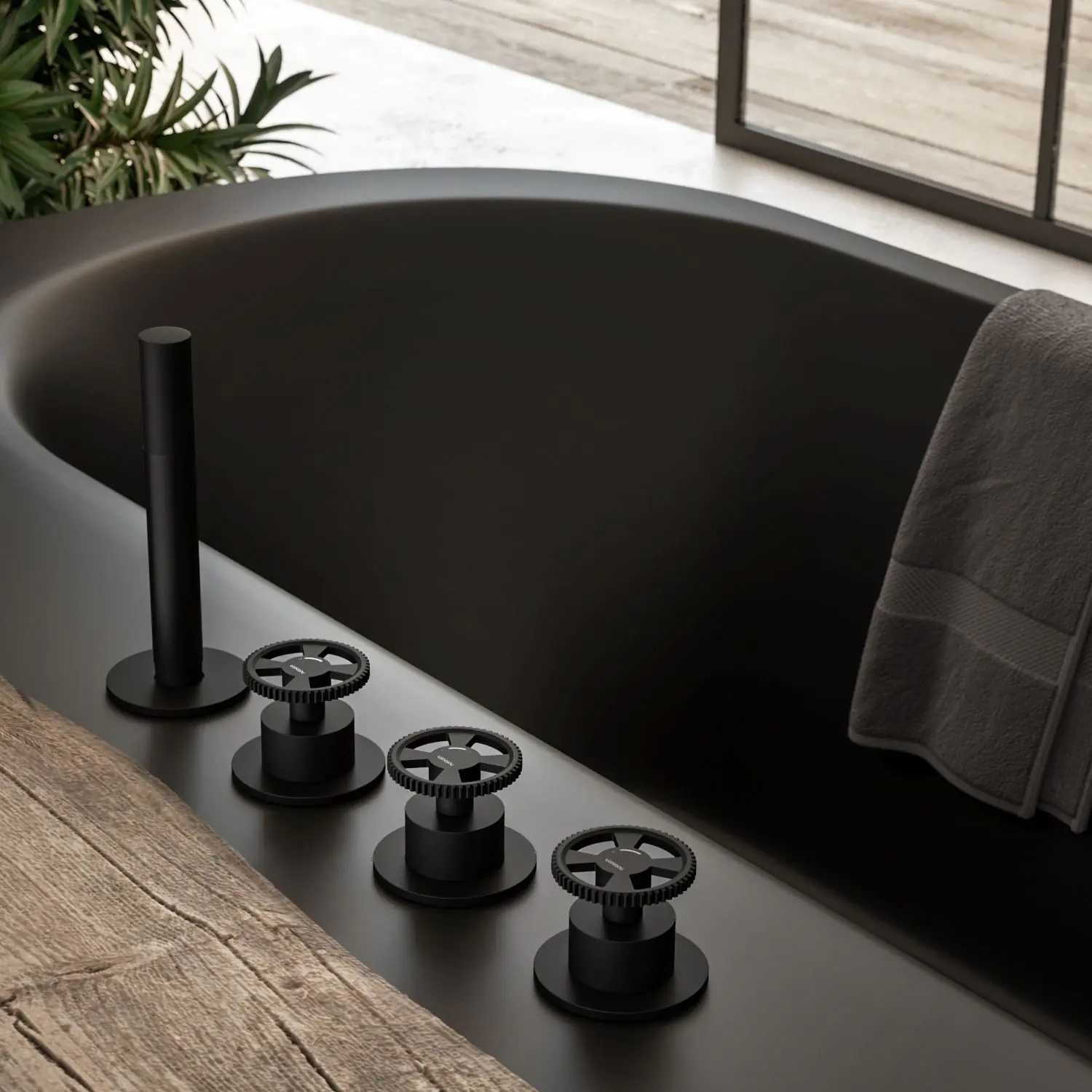 Hotbath Cobber @Work Afbouwdeel - Inbouw Badrandcombinatie 4-Gats 2 Knops Mengkraan Met Omstel En Handdouche Mat Zwart