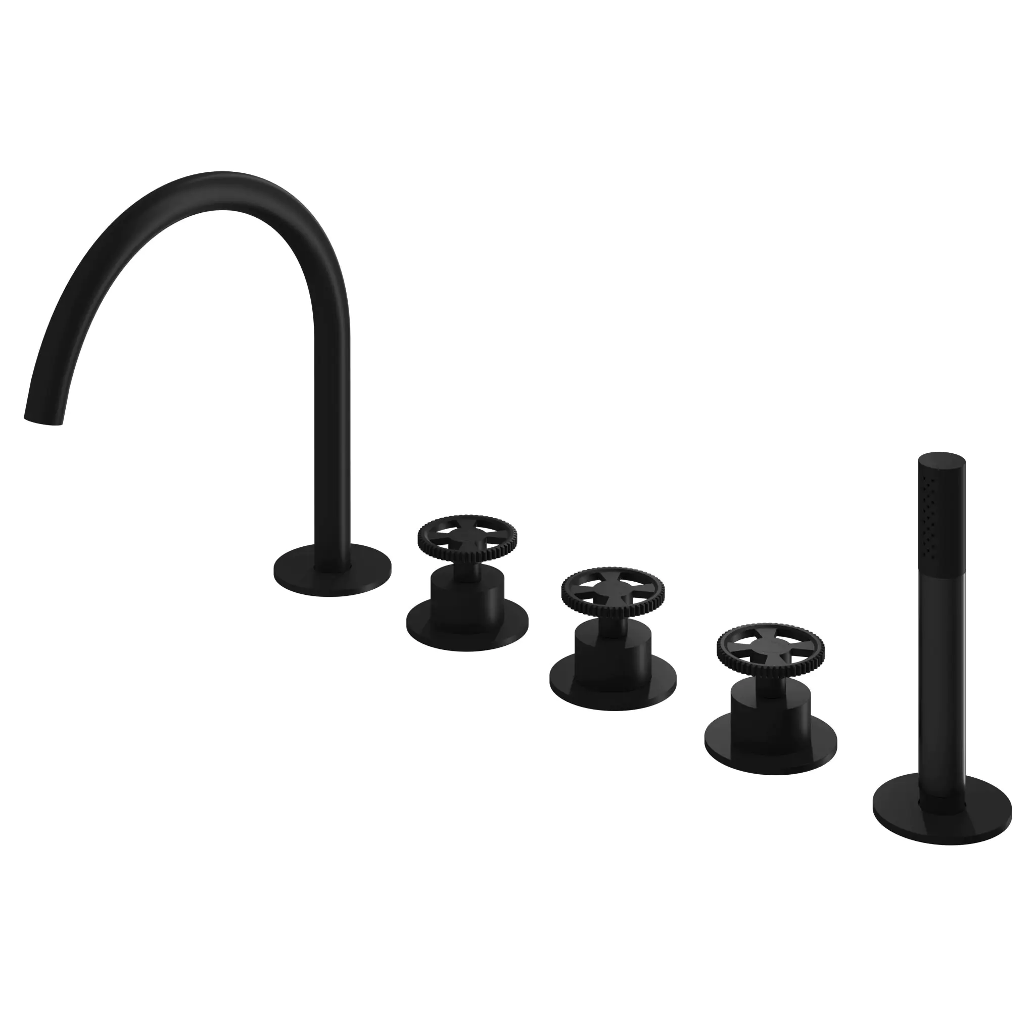 Hotbath Cobber @Work Afbouwdeel - Inbouw Badrandcombinatie 5-Gats Met Draaibare Uitloop, Omstel En Handdouche Mat Zwart