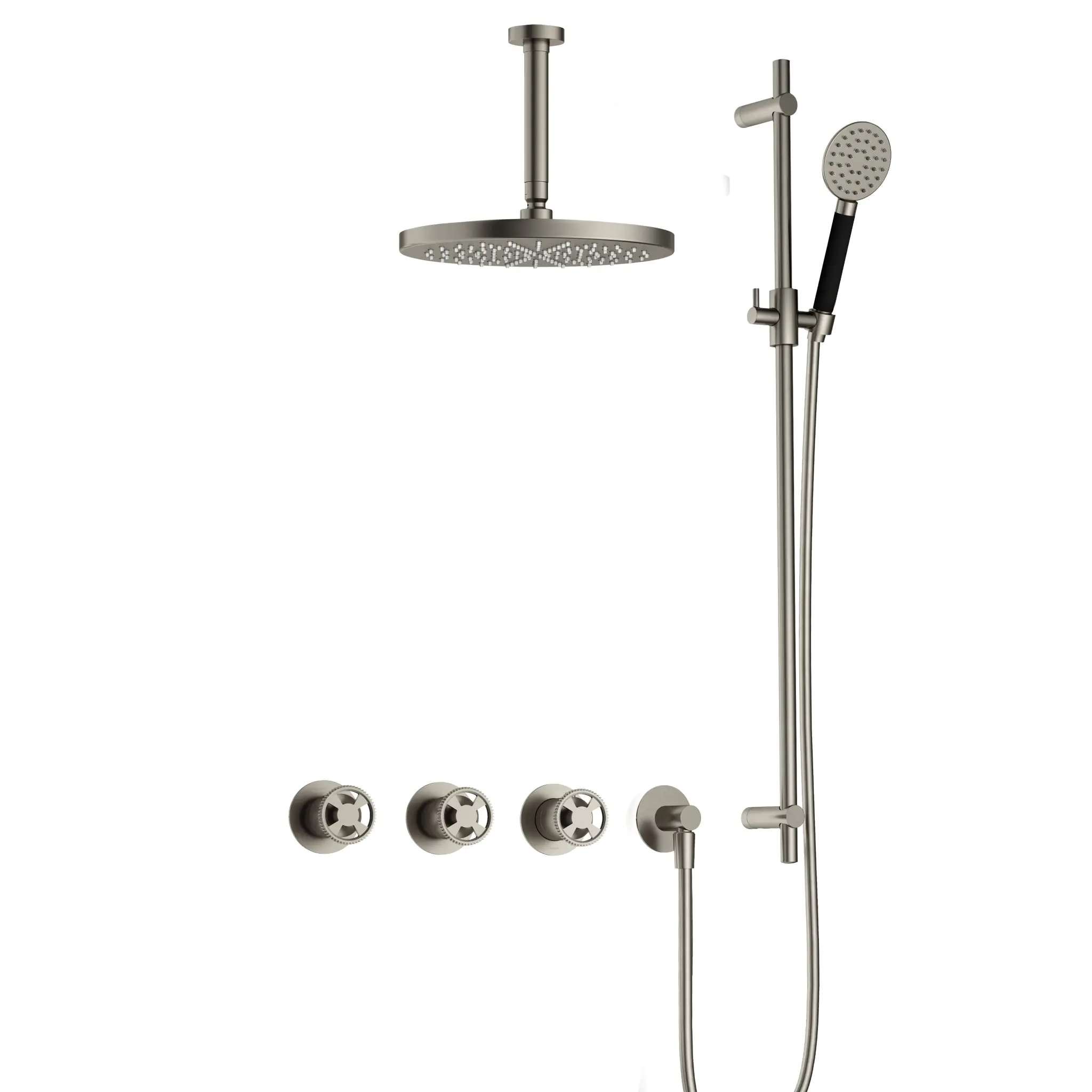 Hotbath Cobber @Work Inbouw Regendoucheset Met 2 Stopkranen, Plafondbuis 15cm, Hoofddouche 30cm, Ronde Handdouche En Glijstang Geborsteld Nikkel