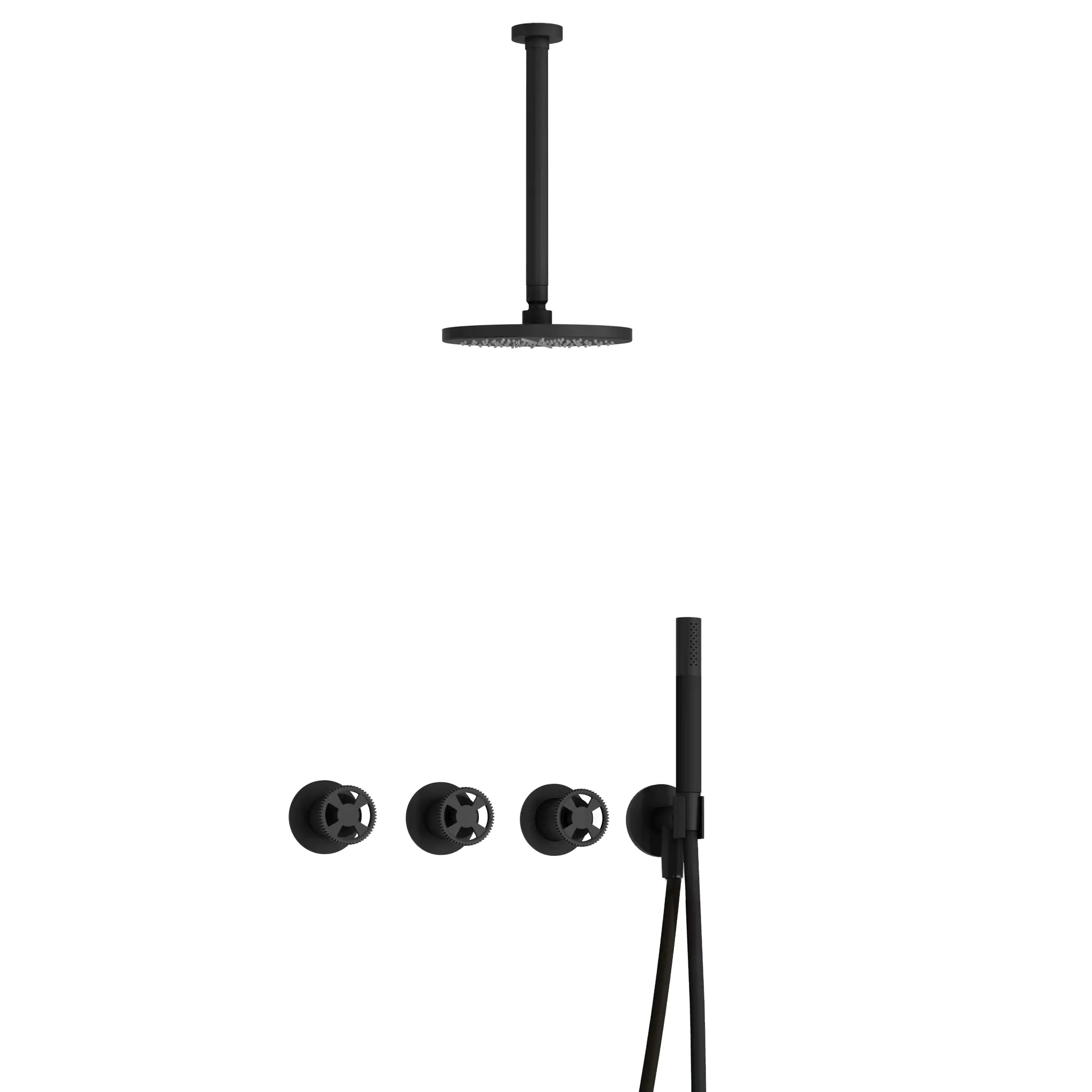 Hotbath Cobber @Work Inbouw Regendoucheset Met 2 Stopkranen, Plafondbuis 30cm, Hoofddouche 20cm En Staafhanddouche Mat Zwart