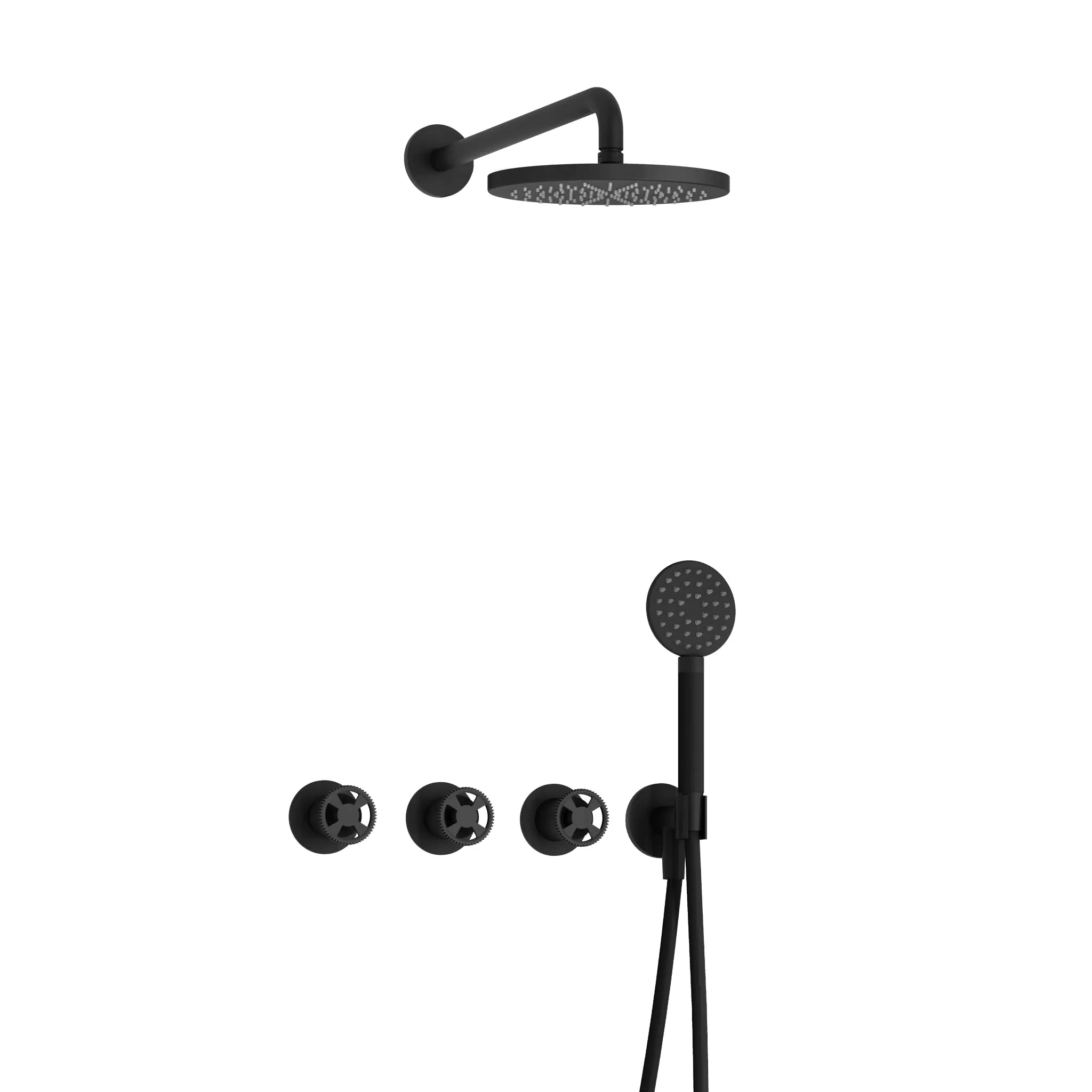 Hotbath Cobber @Work Inbouw Regendoucheset Met 2 Stopkranen, Wandarm, Hoofddouche 20cm En Ronde Handdouche Mat Zwart