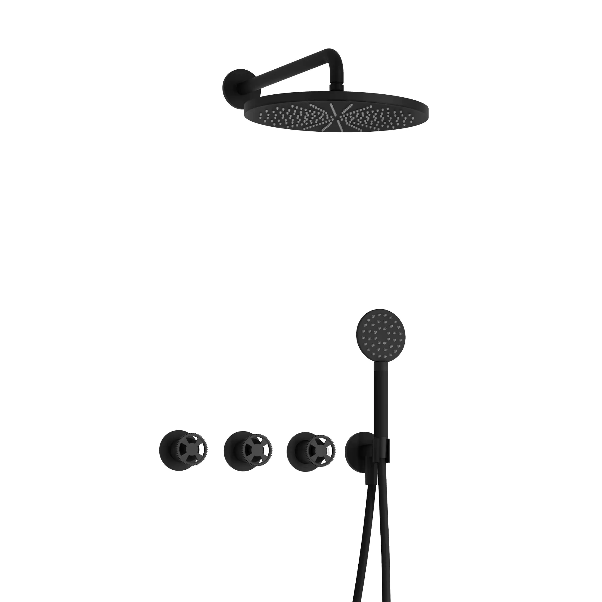 Hotbath Cobber @Work Inbouw Regendoucheset Met 2 Stopkranen, Wandarm, Hoofddouche 30cm En Ronde Handdouche Mat Zwart