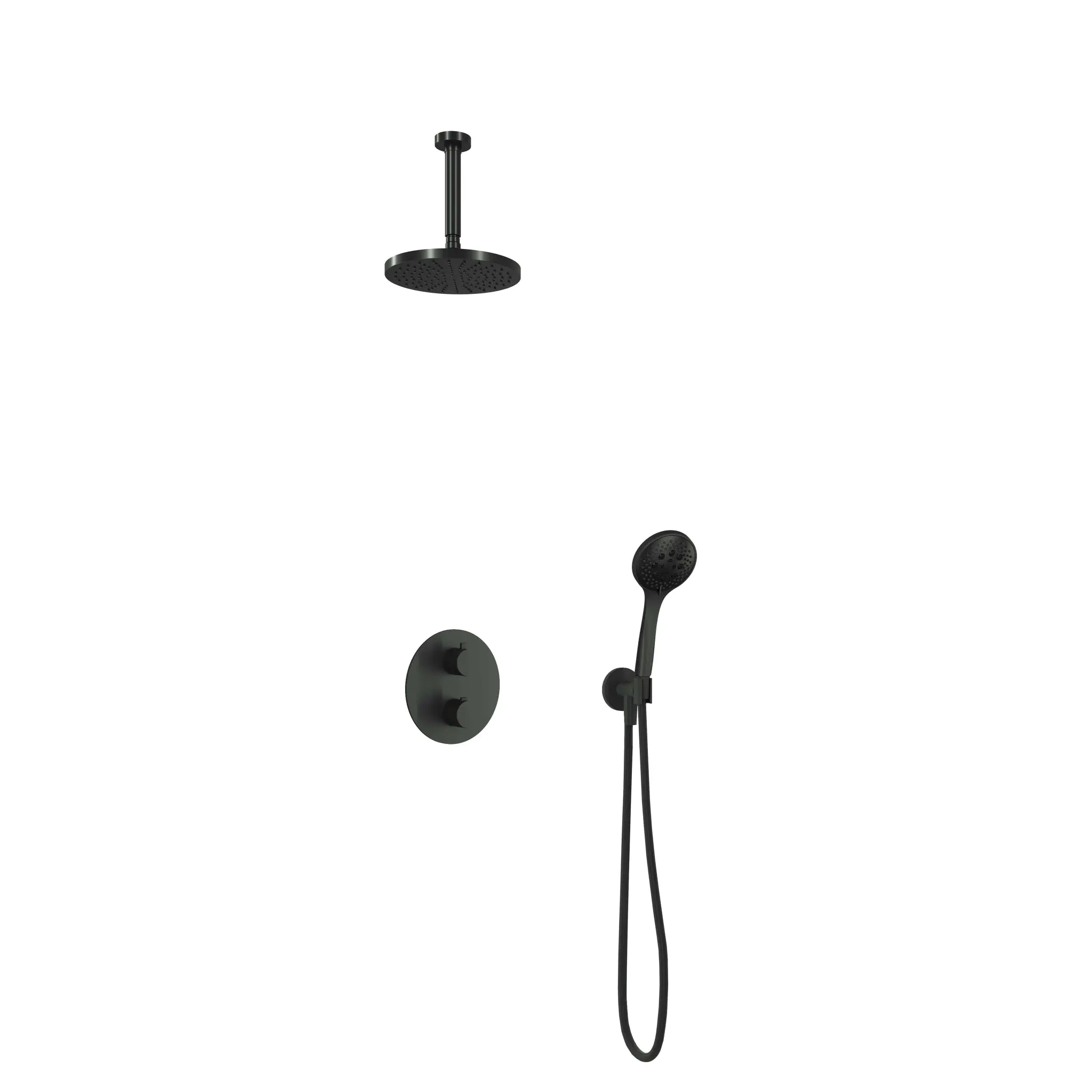 Deze complete regendoucheset van Hotbath uit de serie Cobber kunt u precies samenstellen zoals u dat wenst. Het afbouwdeel is voorzien van 2 draaiknoppen: één voor de watertemperatuur en één om te bepalen of het water uit de hoofddouche of uit de staafhanddouche moet stromen. Iedere set wordt geleverd met de gehele inbouwbox en externe schakelaars. De set is verkrijgbaar in verschillende kleuren. Deze set is voorzien van een plafondbuis 15 cm, hoofddouche 20 cm en een 3 standen handdouche. Let op: De hoofddouches met een diameter 20 cm hebben minimaal een CW3 ketel nodig om dit systeem zo goed mogelijk te laten werken. Voor hoofddouches met een diameter van 25 cm of groter, geldt een CW4 systeem of hoger.