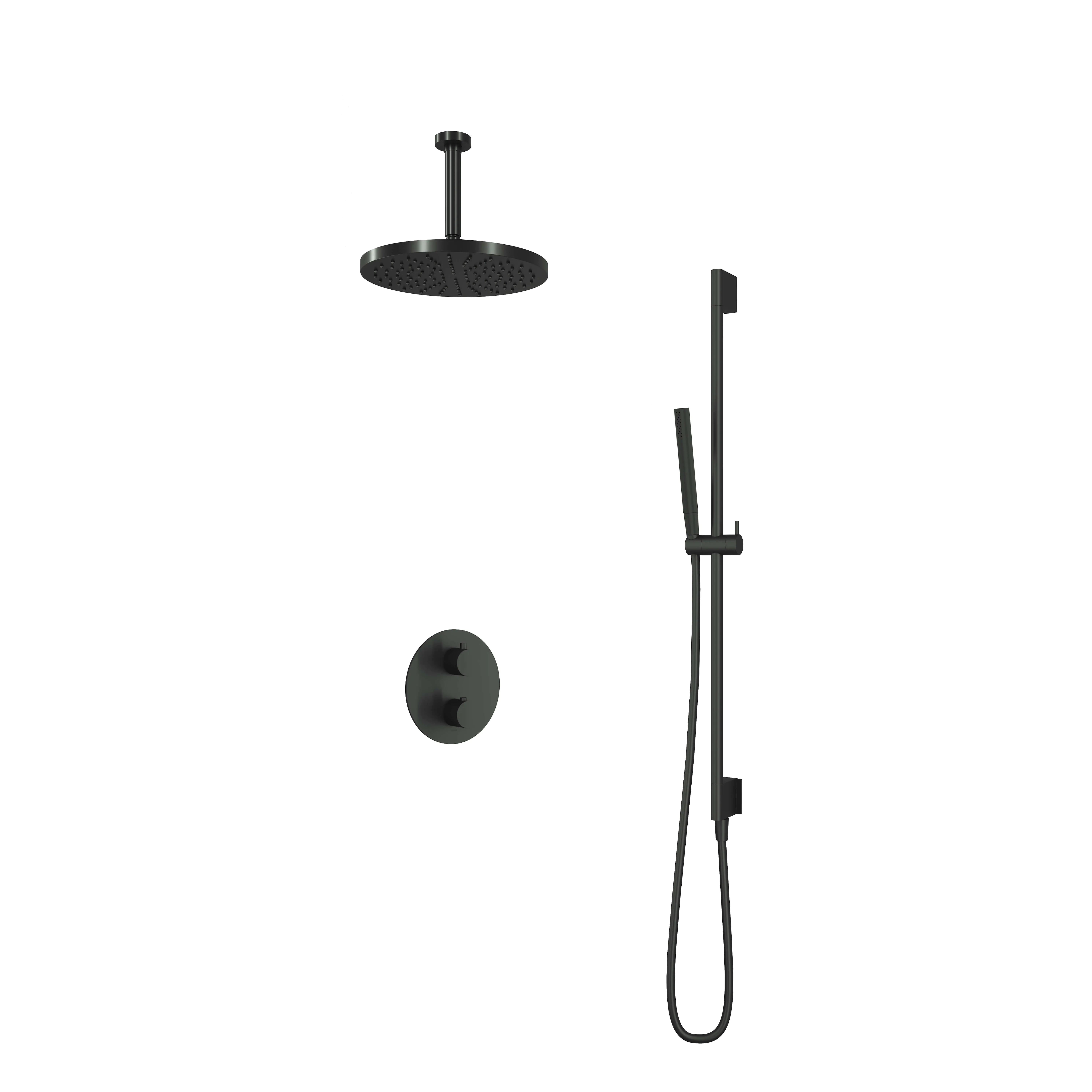 Deze complete regendoucheset van Hotbath uit de serie Cobber kunt u precies samenstellen zoals u dat wenst. Het afbouwdeel is voorzien van 2 draaiknoppen: één voor de watertemperatuur en één om te bepalen of het water uit de hoofddouche of uit de staafhanddouche moet stromen. Iedere set wordt geleverd met de gehele inbouwbox en externe schakelaars. De set is verkrijgbaar in verschillende kleuren. Deze set is voorzien van een plafondbuis 15 cm, hoofddouche 30 cm en een glijstang met staafhanddouche. Let op: De hoofddouches met een diameter 20 cm hebben minimaal een CW3 ketel nodig om dit systeem zo goed mogelijk te laten werken. Voor hoofddouches met een diameter van 25 cm of groter, geldt een CW4 systeem of hoger.