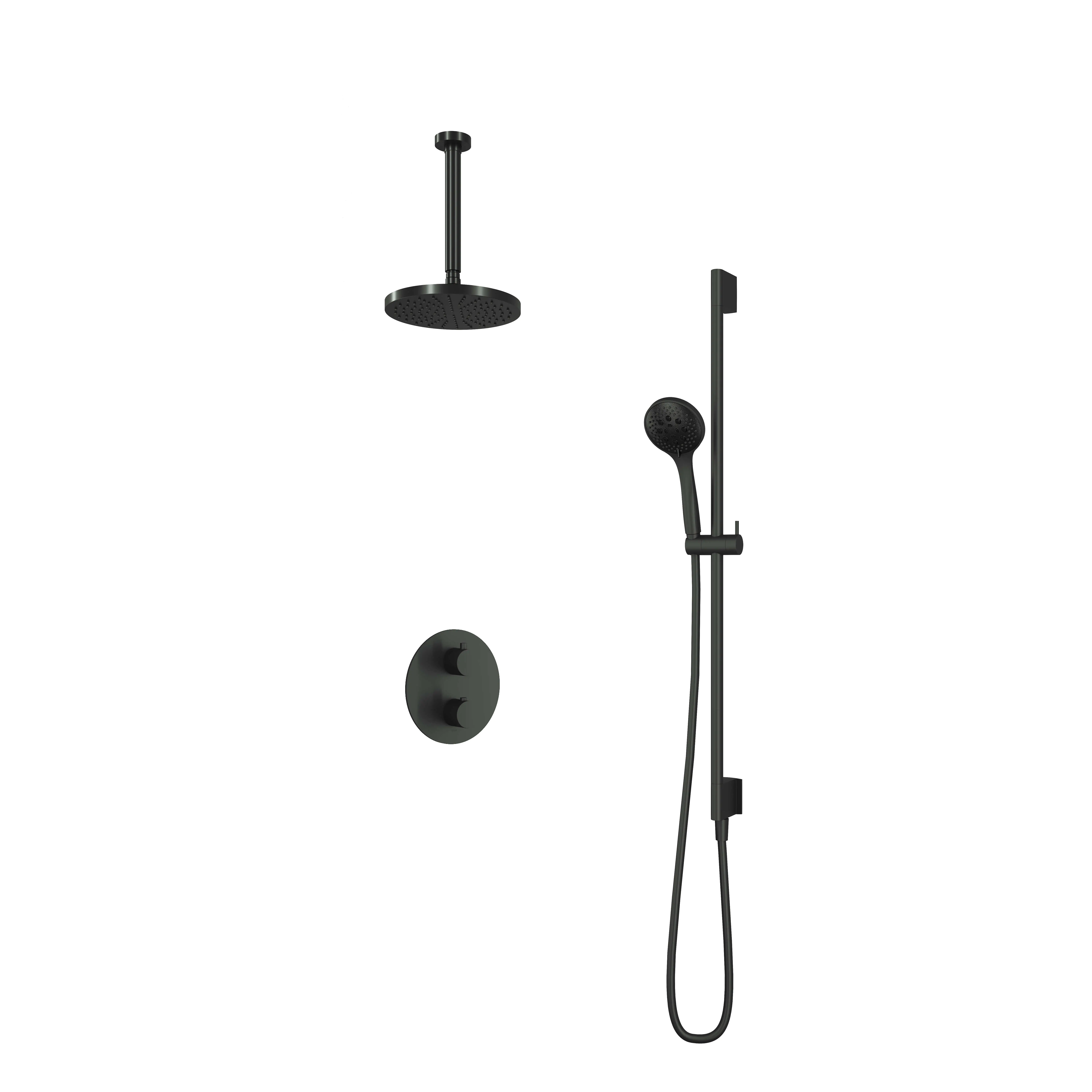 Deze complete regendoucheset van Hotbath uit de serie Cobber kunt u precies samenstellen zoals u dat wenst. Het afbouwdeel is voorzien van 2 draaiknoppen: één voor de watertemperatuur en één om te bepalen of het water uit de hoofddouche of uit de staafhanddouche moet stromen. Iedere set wordt geleverd met de gehele inbouwbox en externe schakelaars. De set is verkrijgbaar in verschillende kleuren. Deze set is voorzien van een plafondbuis 30 cm, hoofddouche 20 cm en een glijstang met 3 standen handdouche. Let op: De hoofddouches met een diameter 20 cm hebben minimaal een CW3 ketel nodig om dit systeem zo goed mogelijk te laten werken. Voor hoofddouches met een diameter van 25 cm of groter, geldt een CW4 systeem of hoger.