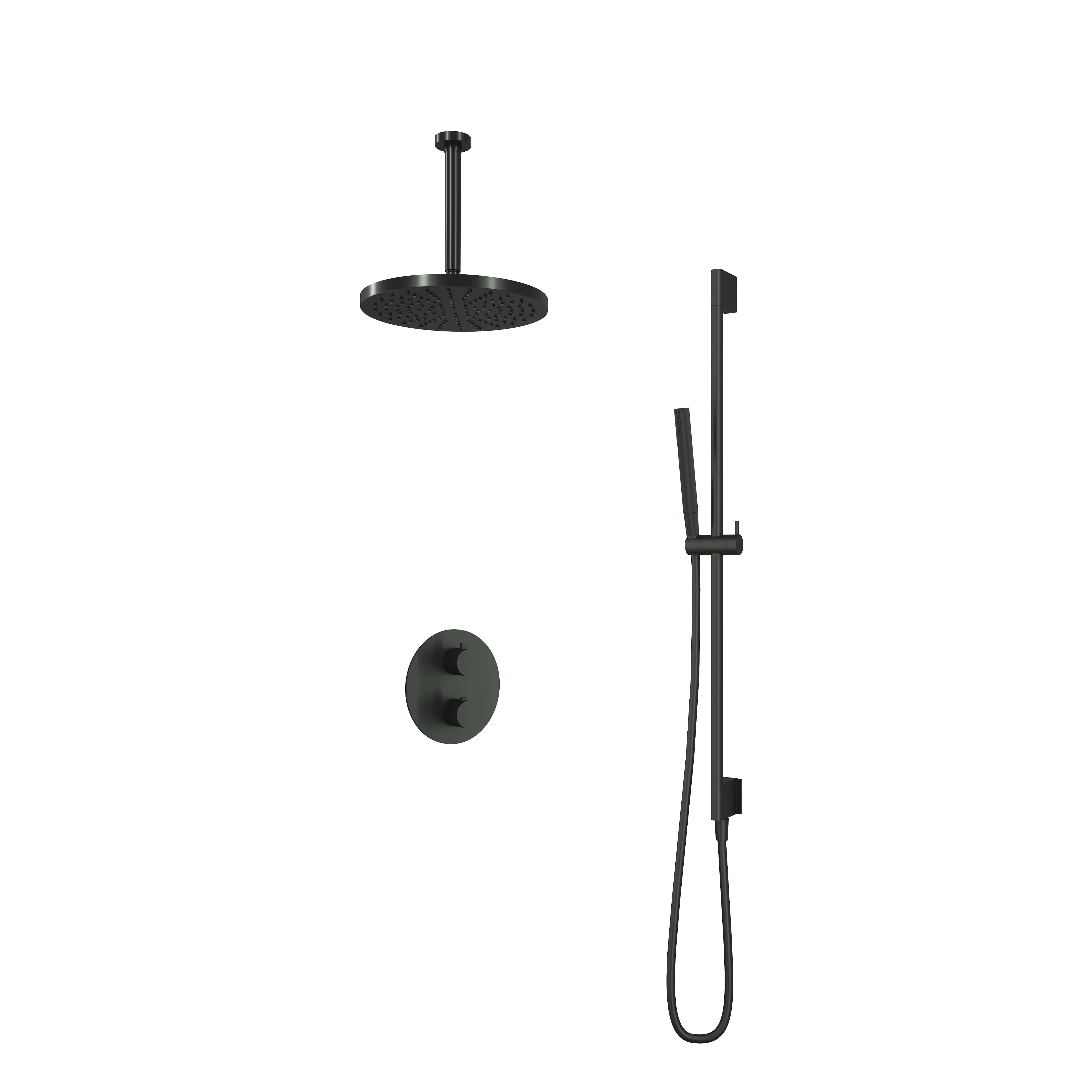 Deze complete regendoucheset van Hotbath uit de serie Cobber kunt u precies samenstellen zoals u dat wenst. Het afbouwdeel is voorzien van 2 draaiknoppen: één voor de watertemperatuur en één om te bepalen of het water uit de hoofddouche of uit de staafhanddouche moet stromen. Iedere set wordt geleverd met de gehele inbouwbox en externe schakelaars. De set is verkrijgbaar in verschillende kleuren. Deze set is voorzien van een plafondbuis 30 cm, hoofddouche 30 cm en een glijstang met staafhanddouche. Let op: De hoofddouches met een diameter 20 cm hebben minimaal een CW3 ketel nodig om dit systeem zo goed mogelijk te laten werken. Voor hoofddouches met een diameter van 25 cm of groter, geldt een CW4 systeem of hoger.