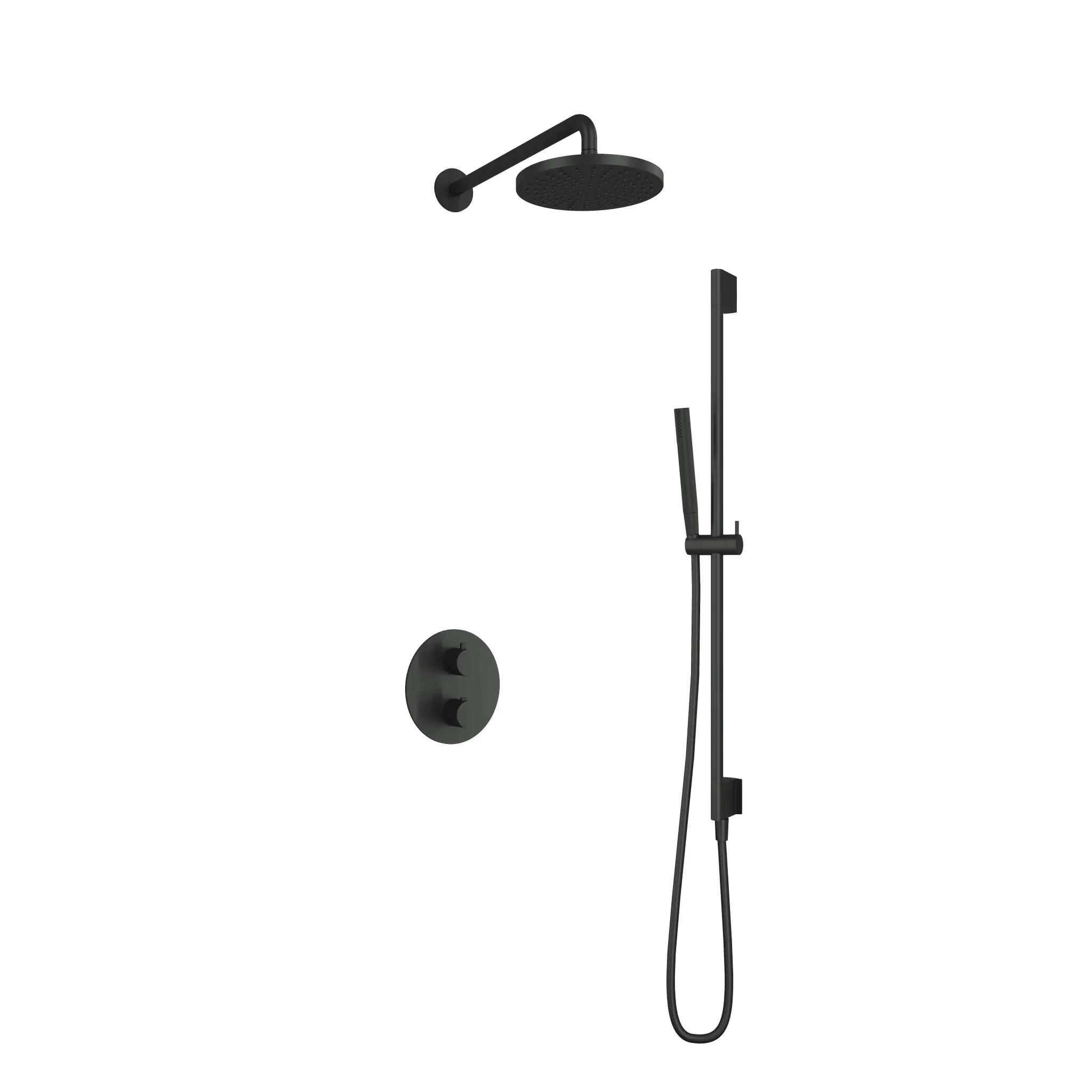 Deze complete regendoucheset van Hotbath uit de serie Cobber kunt u precies samenstellen zoals u dat wenst. Het afbouwdeel is voorzien van 2 draaiknoppen: één voor de watertemperatuur en één om te bepalen of het water uit de hoofddouche of uit de staafhanddouche moet stromen. Iedere set wordt geleverd met de gehele inbouwbox en externe schakelaars. De set is verkrijgbaar in verschillende kleuren. Deze set is voorzien van een wandarm 38,5 cm, hoofddouche 20 cm en een glijstang met staafhanddouche. Let op: De hoofddouches met een diameter 20 cm hebben minimaal een CW3 ketel nodig om dit systeem zo goed mogelijk te laten werken. Voor hoofddouches met een diameter van 25 cm of groter, geldt een CW4 systeem of hoger.