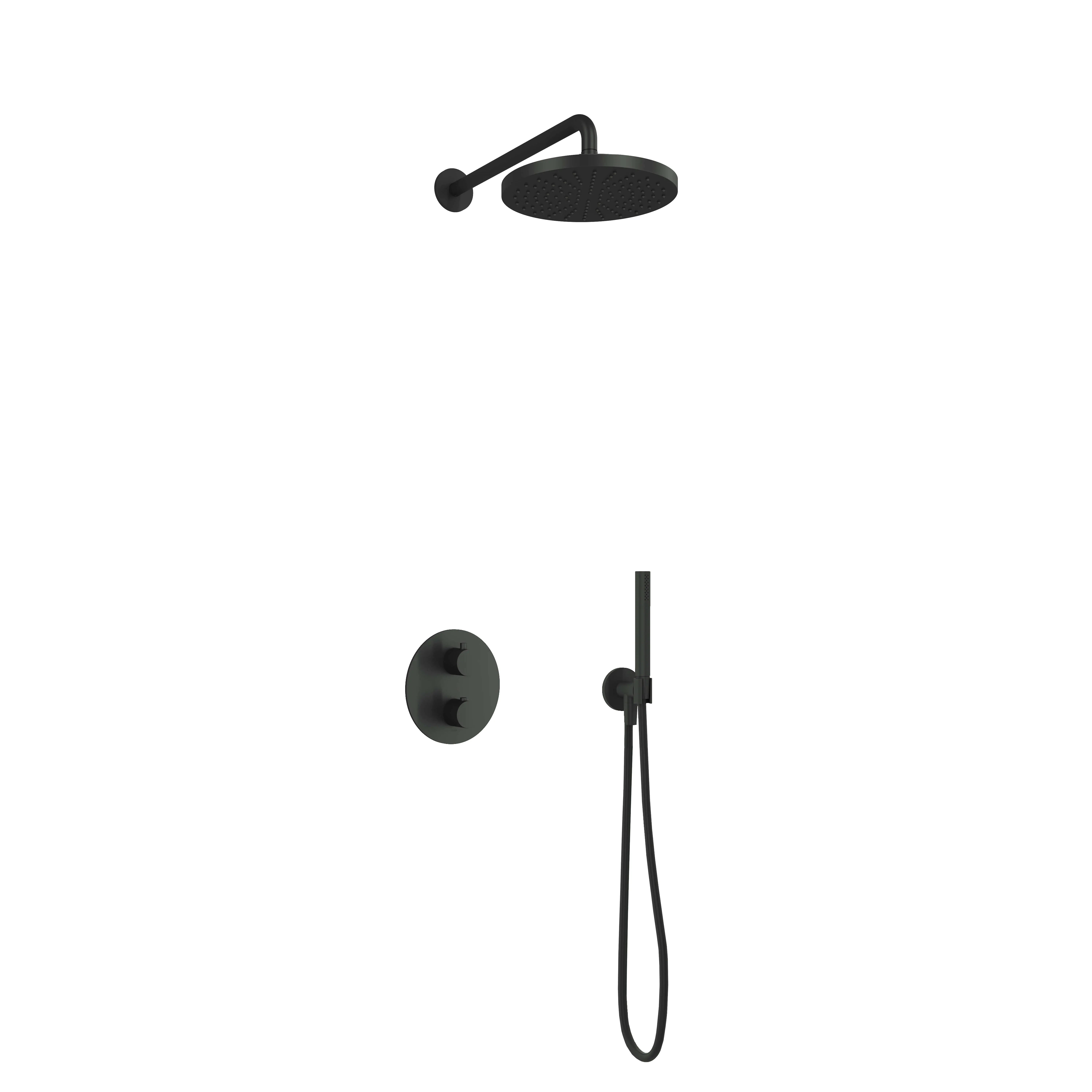 Deze complete regendoucheset van Hotbath uit de serie Cobber kunt u precies samenstellen zoals u dat wenst. Het afbouwdeel is voorzien van 2 draaiknoppen: één voor de watertemperatuur en één om te bepalen of het water uit de hoofddouche of uit de staafhanddouche moet stromen. Iedere set wordt geleverd met de gehele inbouwbox en externe schakelaars. De set is verkrijgbaar in verschillende kleuren. Deze set is voorzien van een wandarm 38,5 cm, hoofddouche 30 cm en een staafhanddouche. Let op: De hoofddouches met een diameter 20 cm hebben minimaal een CW3 ketel nodig om dit systeem zo goed mogelijk te laten werken. Voor hoofddouches met een diameter van 25 cm of groter, geldt een CW4 systeem of hoger.