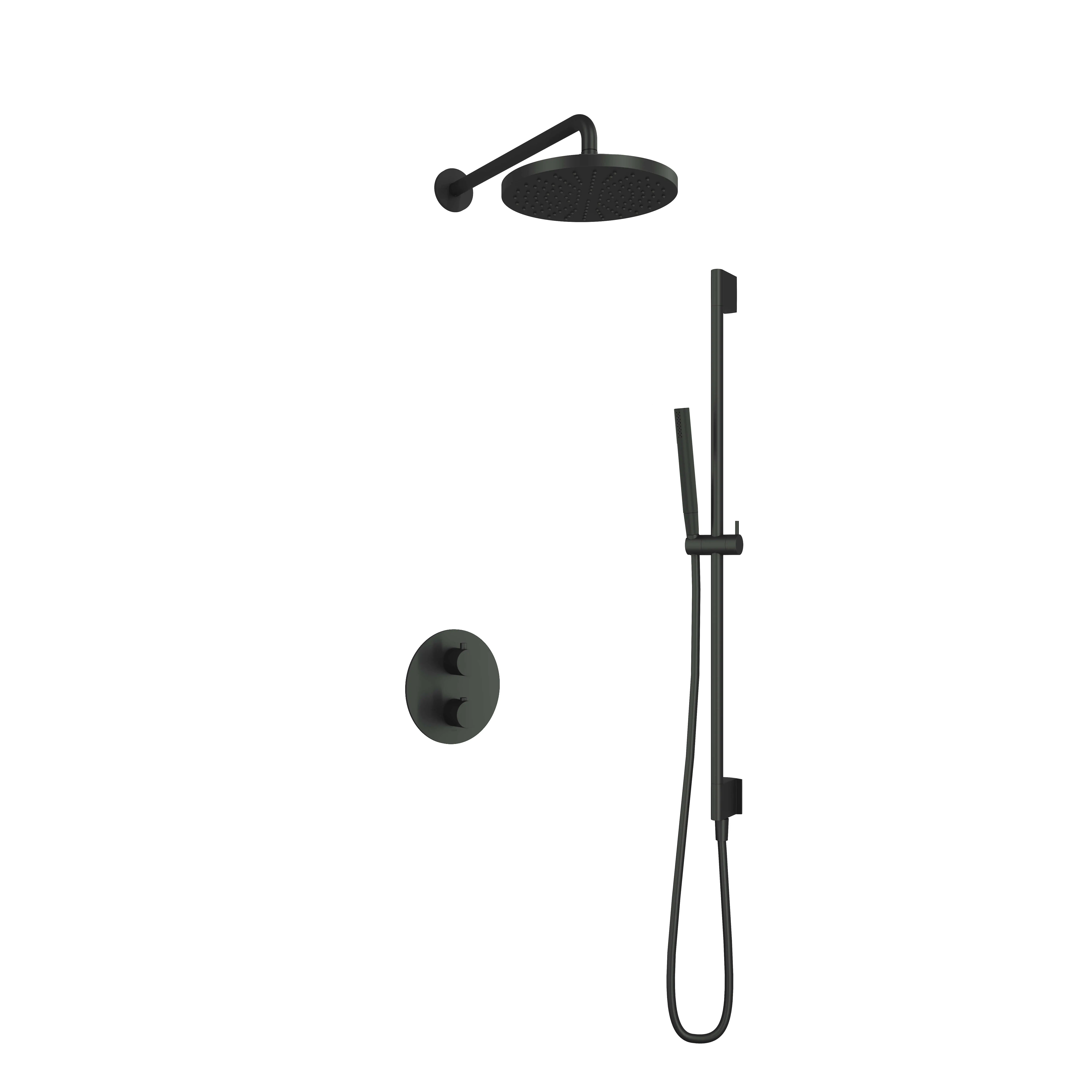 Deze complete regendoucheset van Hotbath uit de serie Cobber kunt u precies samenstellen zoals u dat wenst. Het afbouwdeel is voorzien van 2 draaiknoppen: één voor de watertemperatuur en één om te bepalen of het water uit de hoofddouche of uit de staafhanddouche moet stromen. Iedere set wordt geleverd met de gehele inbouwbox en externe schakelaars. De set is verkrijgbaar in verschillende kleuren. Deze set is voorzien van een wandarm 38,5 cm, hoofddouche 30 cm en een glijstang met staafhanddouche. Let op: De hoofddouches met een diameter 20 cm hebben minimaal een CW3 ketel nodig om dit systeem zo goed mogelijk te laten werken. Voor hoofddouches met een diameter van 25 cm of groter, geldt een CW4 systeem of hoger.