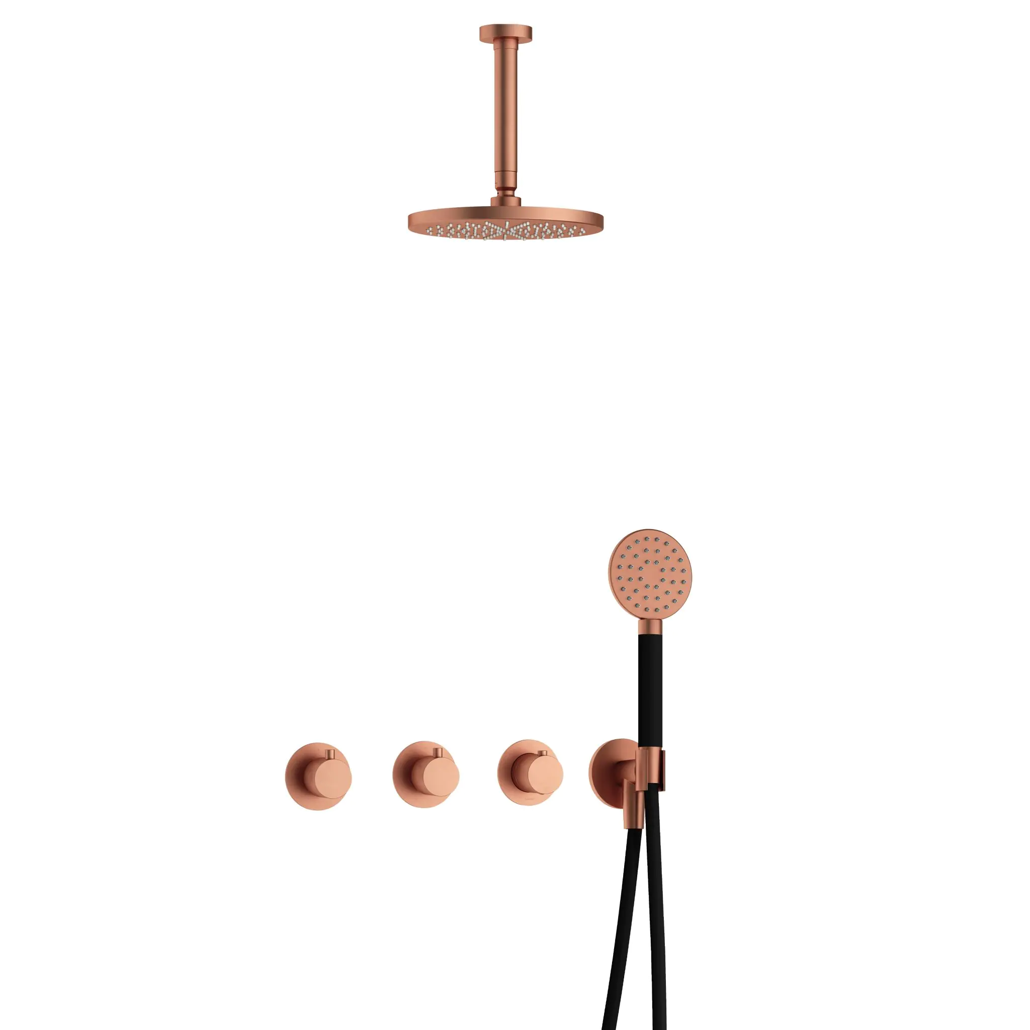 Deze complete regendoucheset van Hotbath uit de serie Cobber kunt u precies samenstellen zoals u dat wenst. Het afbouwdeel is voorzien van 3 draaiknoppen: een voor de watertemperatuur en een om te bepalen of het water uit de hoofddouche of uit de handdouche te laten stromen. Iedere set wordt geleverd met de gehele inbouwbox en externe schakelaars. De set is verkrijgbaar in verschillende kleuren. Deze set is voorzien van een plafondbuis 15 cm, hoofddouche 20 cm en een ronde handdouche. Let op: De hoofddouches met een diameter 20 cm hebben minimaal een CW3 ketel nodig om dit systeem zo goed mogelijk te laten werken. Voor hoofddouches met een diameter van 25 cm of groter, geldt een CW4 systeem of hoger.
