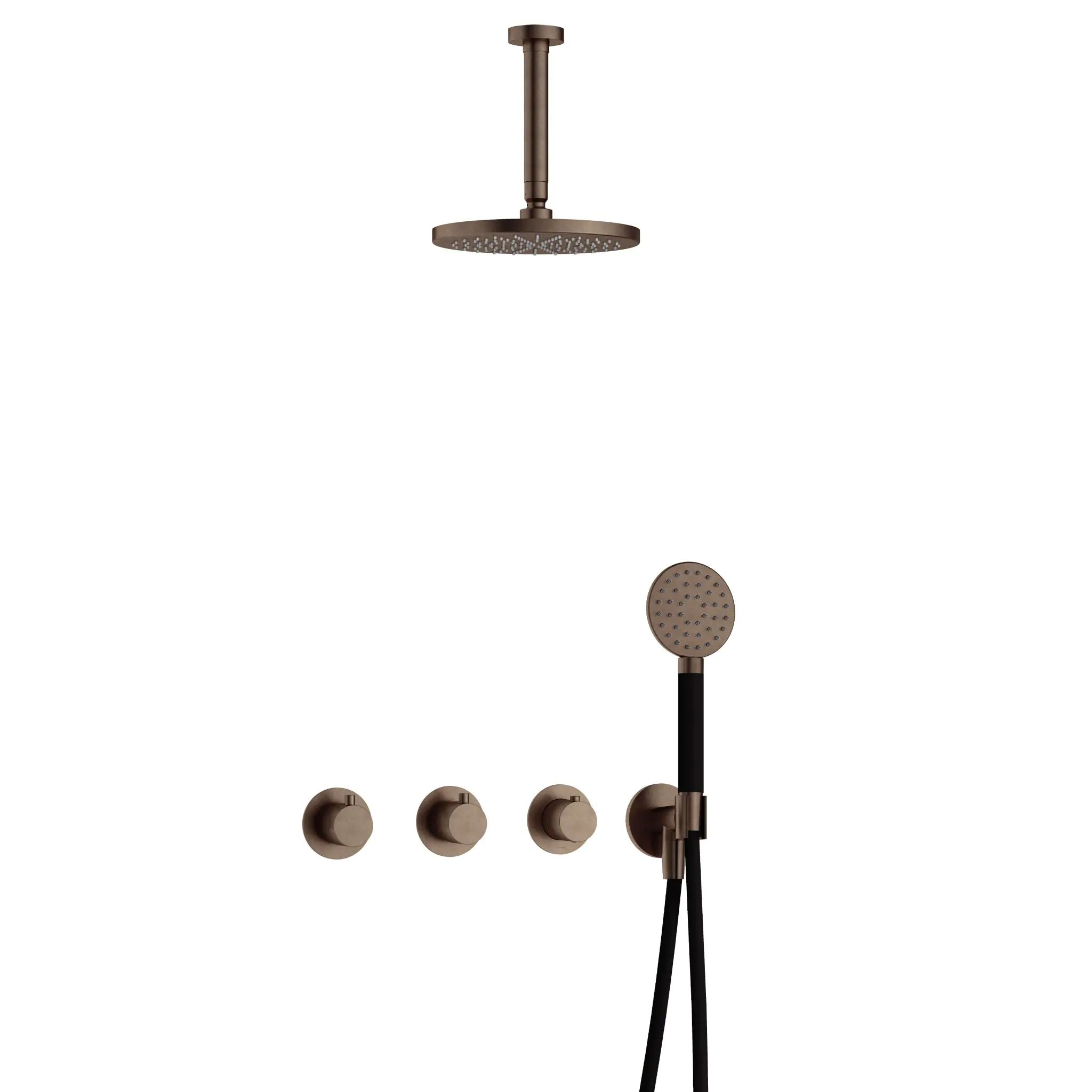 Hotbath Cobber Inbouw Regendoucheset Met Thermostaatkraan, 2 Stopkranen, Plafondbuis 15cm, Hoofddouche 20cm En 3-Standen Handdouche Verouderd Messing