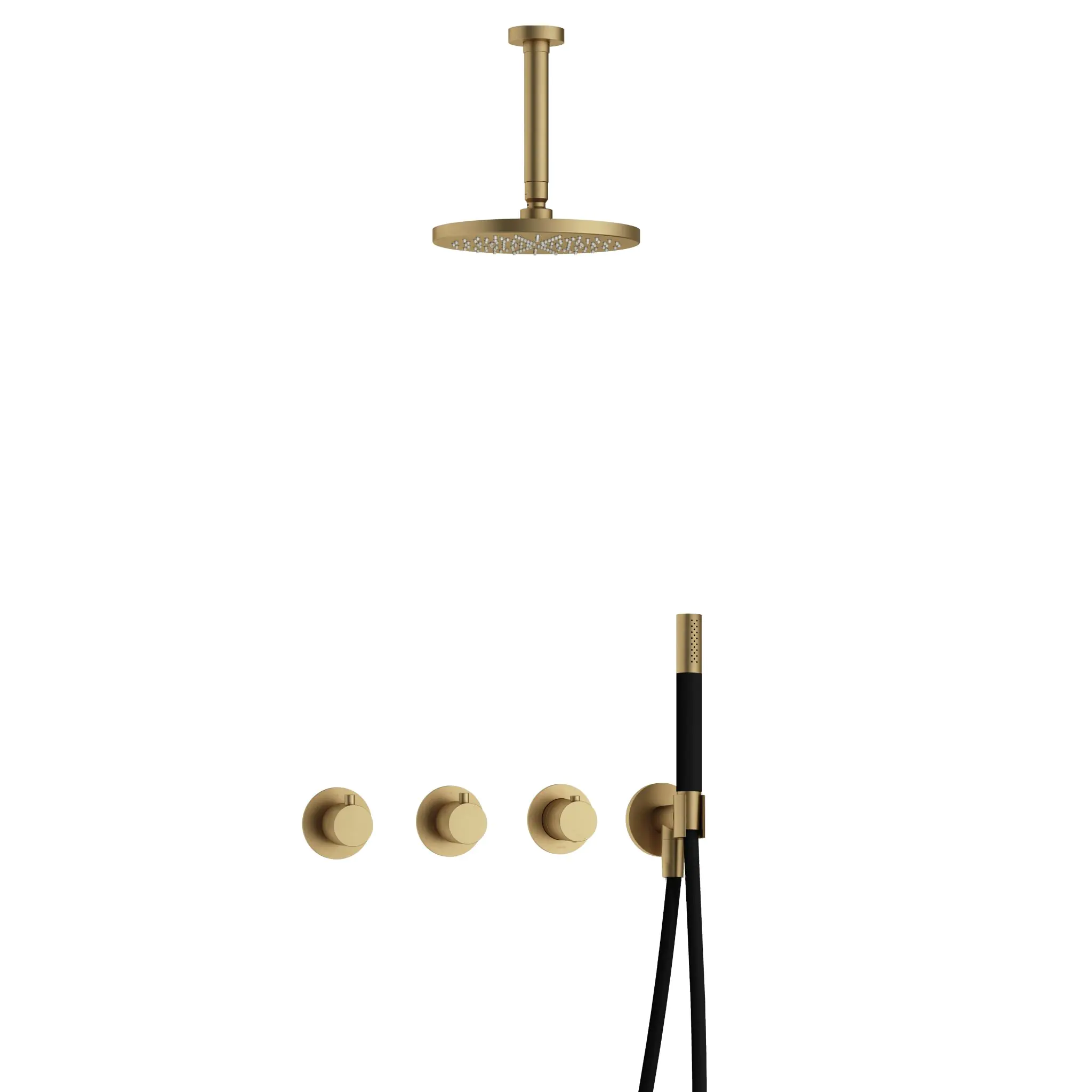 Deze complete regendoucheset van Hotbath uit de serie Cobber kunt u precies samenstellen zoals u dat wenst. Het afbouwdeel is voorzien van 3 draaiknoppen: een voor de watertemperatuur en een om te bepalen of het water uit de hoofddouche of uit de handdouche te laten stromen. Iedere set wordt geleverd met de gehele inbouwbox en externe schakelaars. De set is verkrijgbaar in verschillende kleuren. Deze set is voorzien van een plafondbuis 15 cm, hoofddouche 20 cm en een staafhanddouche. Let op: De hoofddouches met een diameter 20 cm hebben minimaal een CW3 ketel nodig om dit systeem zo goed mogelijk te laten werken. Voor hoofddouches met een diameter van 25 cm of groter, geldt een CW4 systeem of hoger.