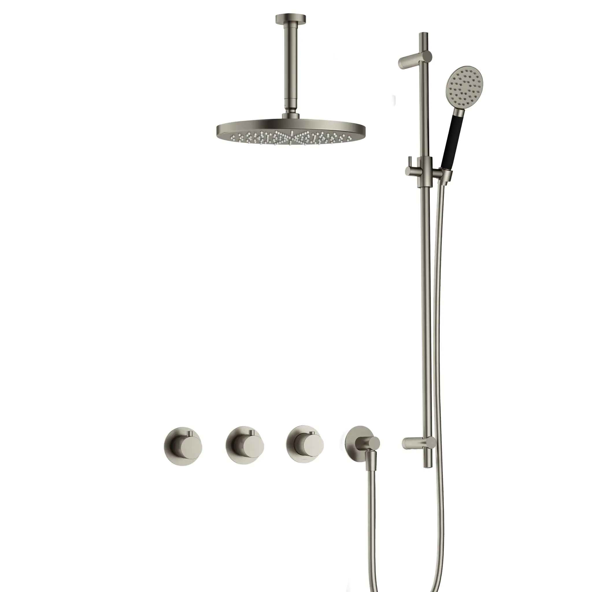 Hotbath Cobber Inbouw Regendoucheset Met Thermostaatkraan, 2 Stopkranen, Plafondbuis 15cm, Hoofddouche 30cm, 3-Standen Handdouche En Glijstang Geborsteld Nikkel