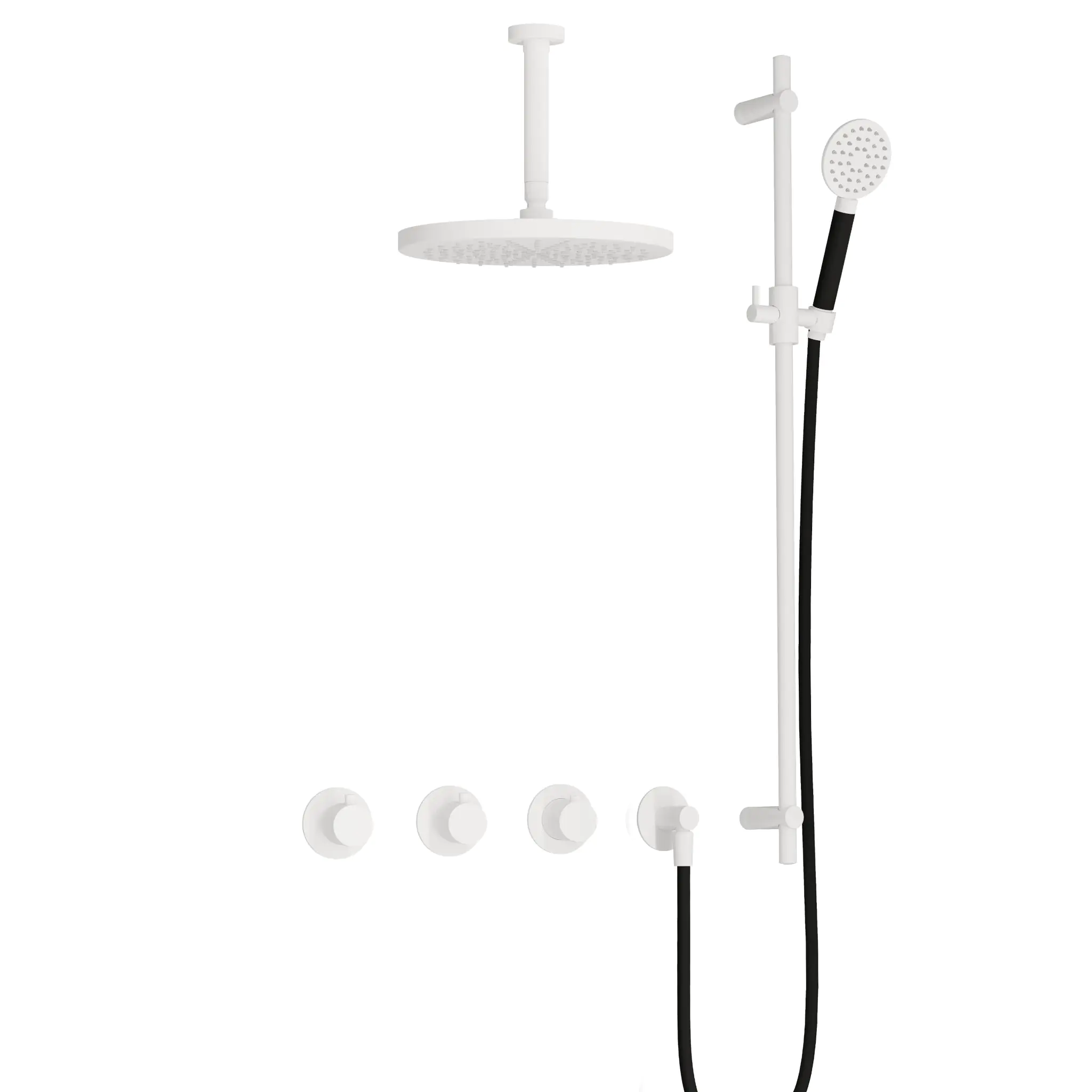Hotbath Cobber Inbouw Regendoucheset Met Thermostaatkraan, 2 Stopkranen, Plafondbuis 15cm, Hoofddouche 30cm, 3-Standen Handdouche En Glijstang Mat Wit