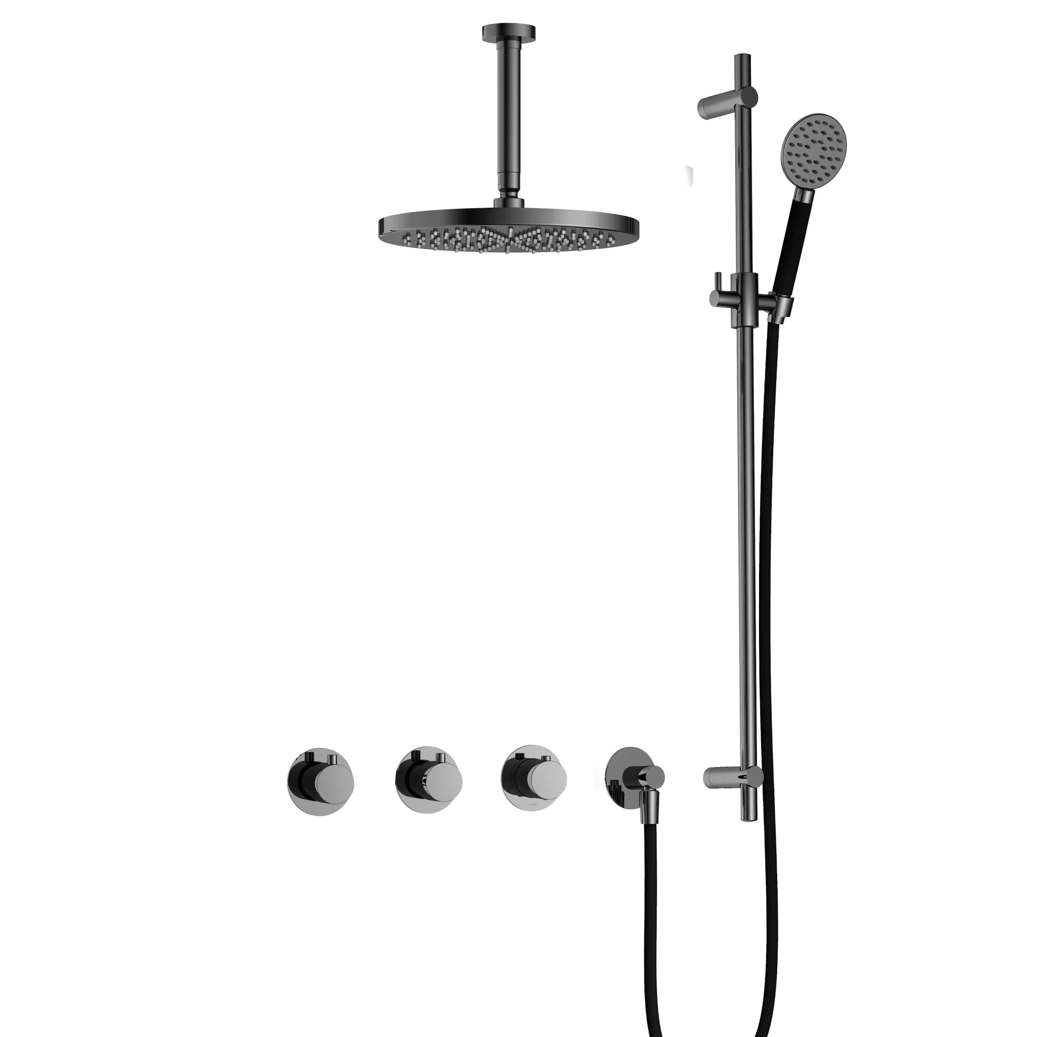 Hotbath Cobber Inbouw Regendoucheset Met Thermostaatkraan, 2 Stopkranen, Plafondbuis 15cm, Hoofddouche 30cm, 3-Standen Handdouche En Glijstang Zwart Chroom