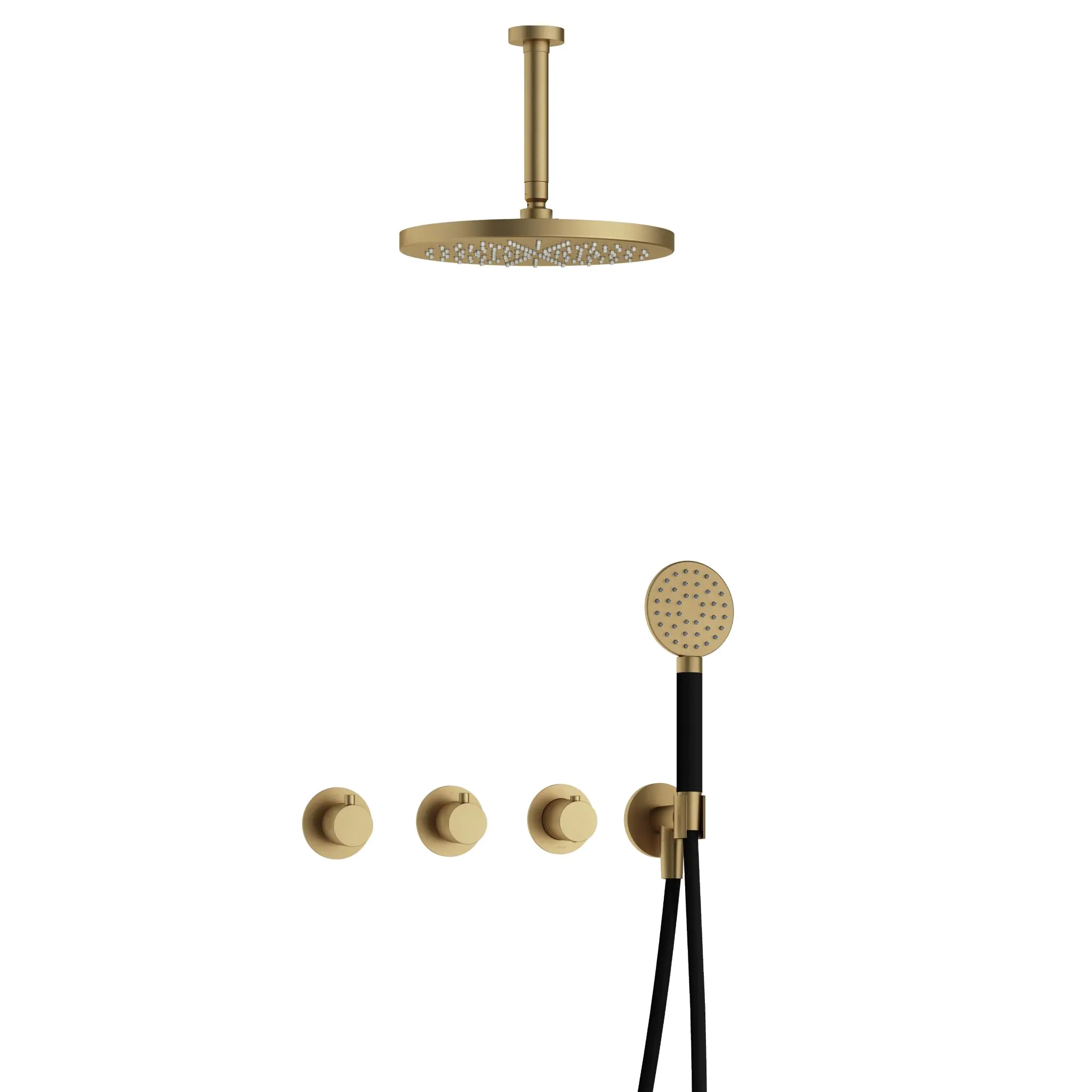 Deze complete regendoucheset van Hotbath uit de serie Cobber kunt u precies samenstellen zoals u dat wenst. Het afbouwdeel is voorzien van 3 draaiknoppen: een voor de watertemperatuur en een om te bepalen of het water uit de hoofddouche of uit de handdouche te laten stromen. Iedere set wordt geleverd met de gehele inbouwbox en externe schakelaars. De set is verkrijgbaar in verschillende kleuren. Deze set is voorzien van een plafondbuis 15 cm, hoofddouche 30 cm en een ronde handdouche. Let op: De hoofddouches met een diameter 20 cm hebben minimaal een CW3 ketel nodig om dit systeem zo goed mogelijk te laten werken. Voor hoofddouches met een diameter van 25 cm of groter, geldt een CW4 systeem of hoger.