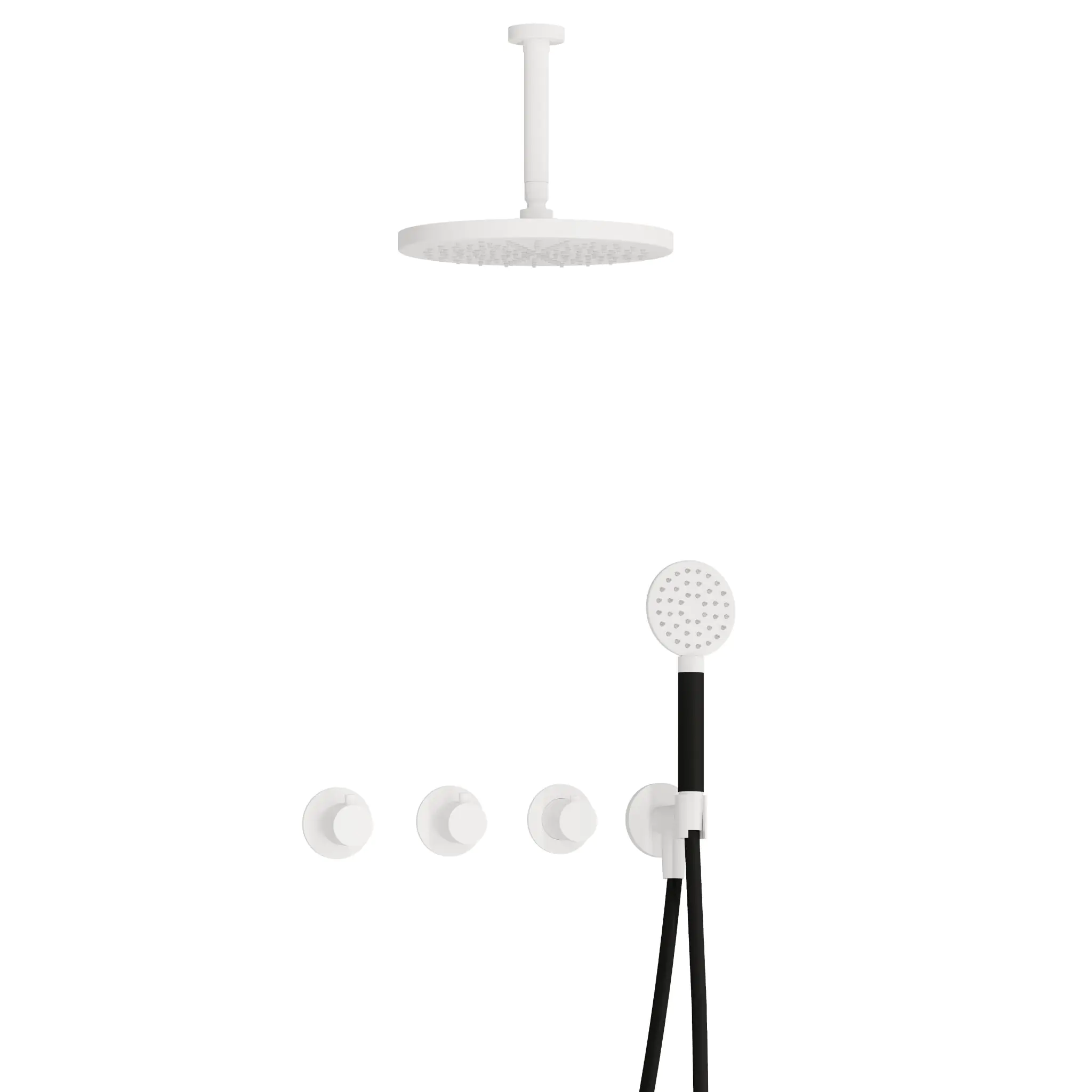 Deze complete regendoucheset van Hotbath uit de serie Cobber kunt u precies samenstellen zoals u dat wenst. Het afbouwdeel is voorzien van 3 draaiknoppen: een voor de watertemperatuur en een om te bepalen of het water uit de hoofddouche of uit de handdouche te laten stromen. Iedere set wordt geleverd met de gehele inbouwbox en externe schakelaars. De set is verkrijgbaar in verschillende kleuren. Deze set is voorzien van een plafondbuis 15 cm, hoofddouche 30 cm en een ronde handdouche. Let op: De hoofddouches met een diameter 20 cm hebben minimaal een CW3 ketel nodig om dit systeem zo goed mogelijk te laten werken. Voor hoofddouches met een diameter van 25 cm of groter, geldt een CW4 systeem of hoger.