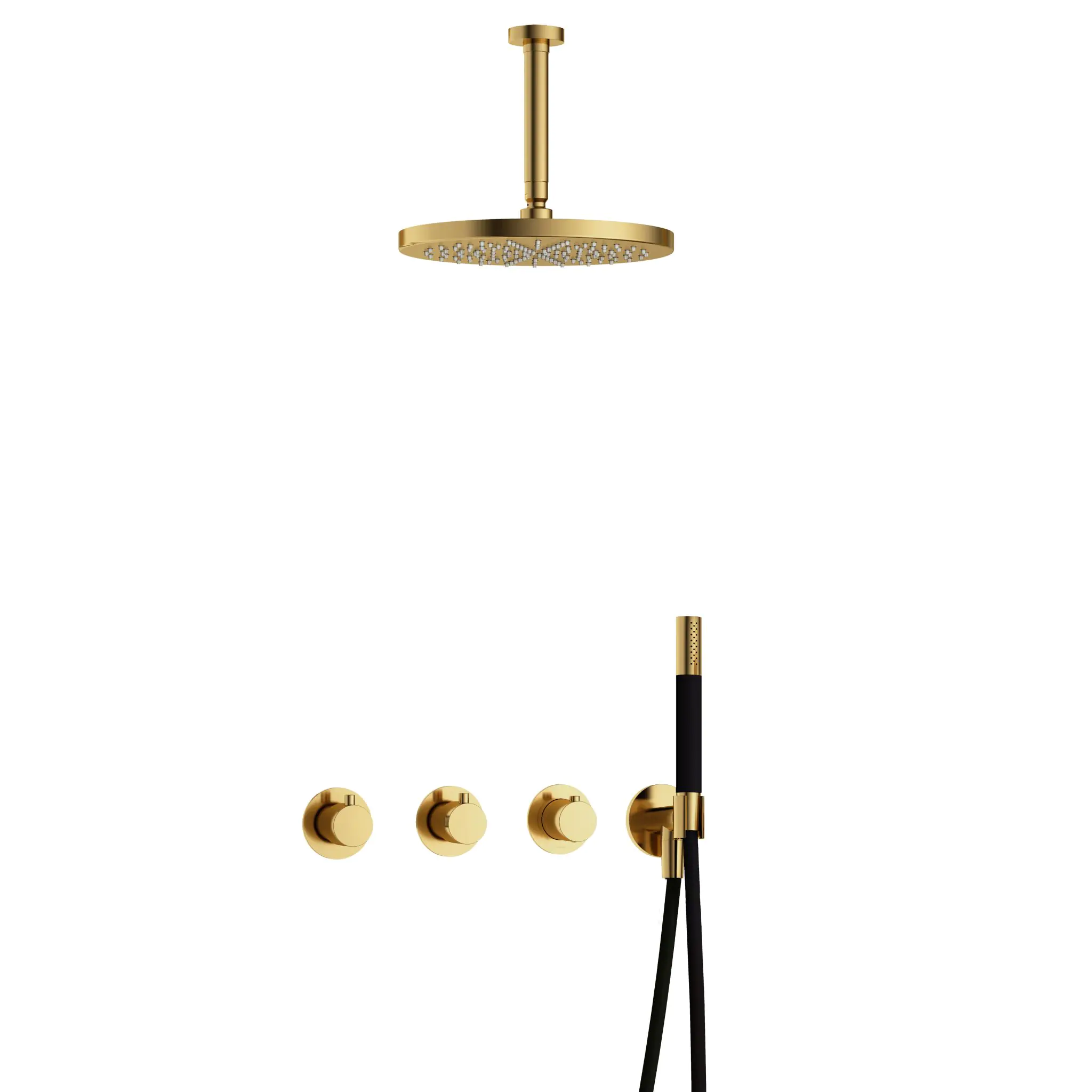 Hotbath Cobber Inbouw Regendoucheset Met Thermostaatkraan, 2 Stopkranen, Plafondbuis 15cm, Hoofddouche 30cm En Staafhanddouche Gepolijst Messing PVD