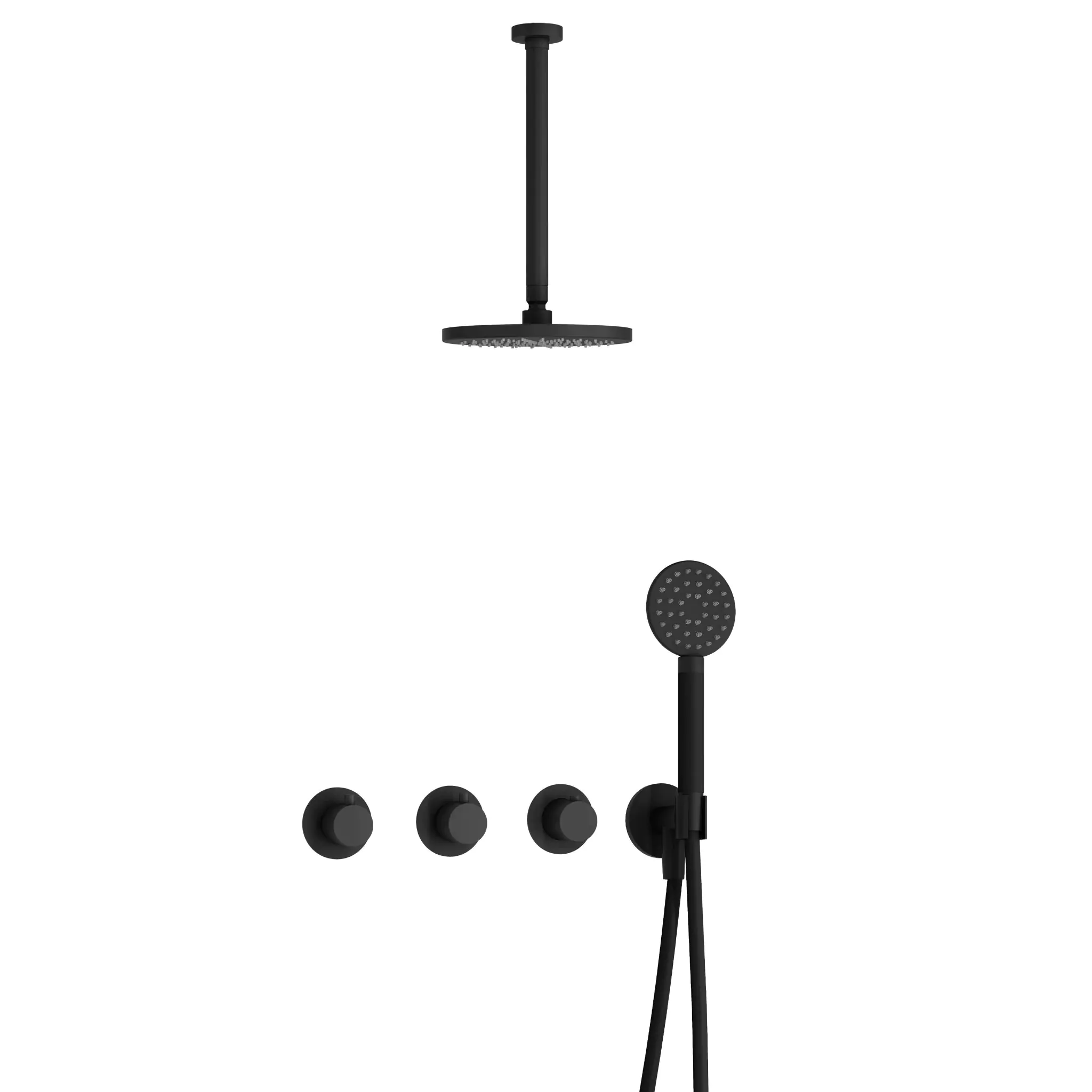 Deze complete regendoucheset van Hotbath uit de serie Cobber kunt u precies samenstellen zoals u dat wenst. Het afbouwdeel is voorzien van 3 draaiknoppen: een voor de watertemperatuur en een om te bepalen of het water uit de hoofddouche of uit de handdouche te laten stromen. Iedere set wordt geleverd met de gehele inbouwbox en externe schakelaars. De set is verkrijgbaar in verschillende kleuren. Deze set is voorzien van een plafondbuis 30 cm, hoofddouche 20 cm en een ronde handdouche. Let op: De hoofddouches met een diameter 20 cm hebben minimaal een CW3 ketel nodig om dit systeem zo goed mogelijk te laten werken. Voor hoofddouches met een diameter van 25 cm of groter, geldt een CW4 systeem of hoger.